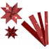 Ensfargede papirstrimler i to forskjellige størrelser fra Vivi Gade Design. Dia. indikerer de ferdige stjernens mål. Beskrivelse følger med. Dia. 6,5+11,5 cm.