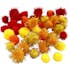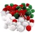 Kuleformede Pomponer i tre farger, i to størrelser, med og uten glitter.