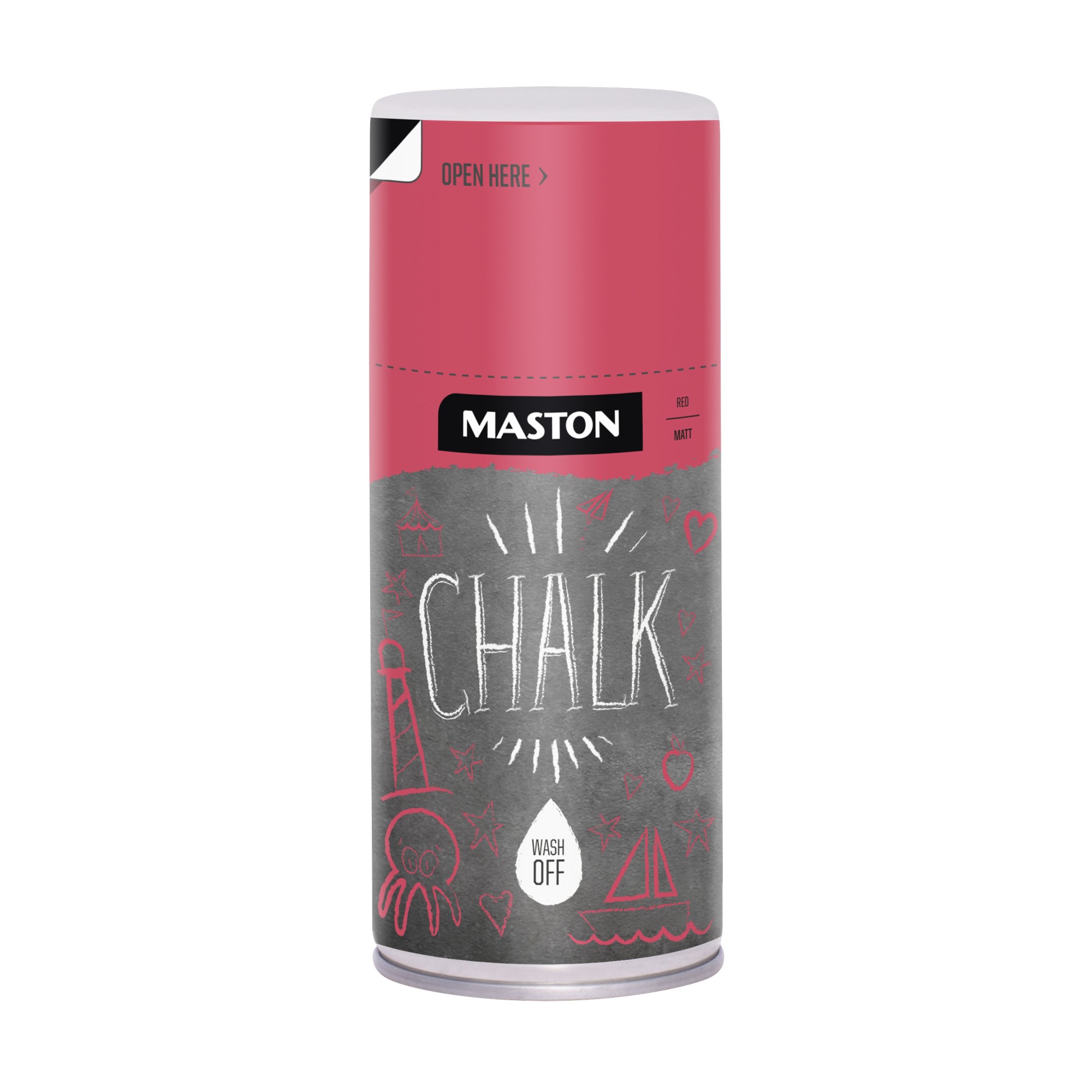 Maston Chalk er en hurtigtørkende krittspray som enkelt kan vaskes bort med vann.Egnet for asfalt, gress, tre, sand, glass etc. Porøse materialer kan påvirke produktets vaskbarhet.