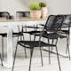 Lindos-stolene er også laget av aluminium og har en dyp svart farge som gir en kontrastfylt og moderne estetikk til ditt utendørsmiljø. Deres elegante design og komfortable sitteplasser gjør dem perfekte for avslappende måltider eller sosiale sammenkomster utendørs.