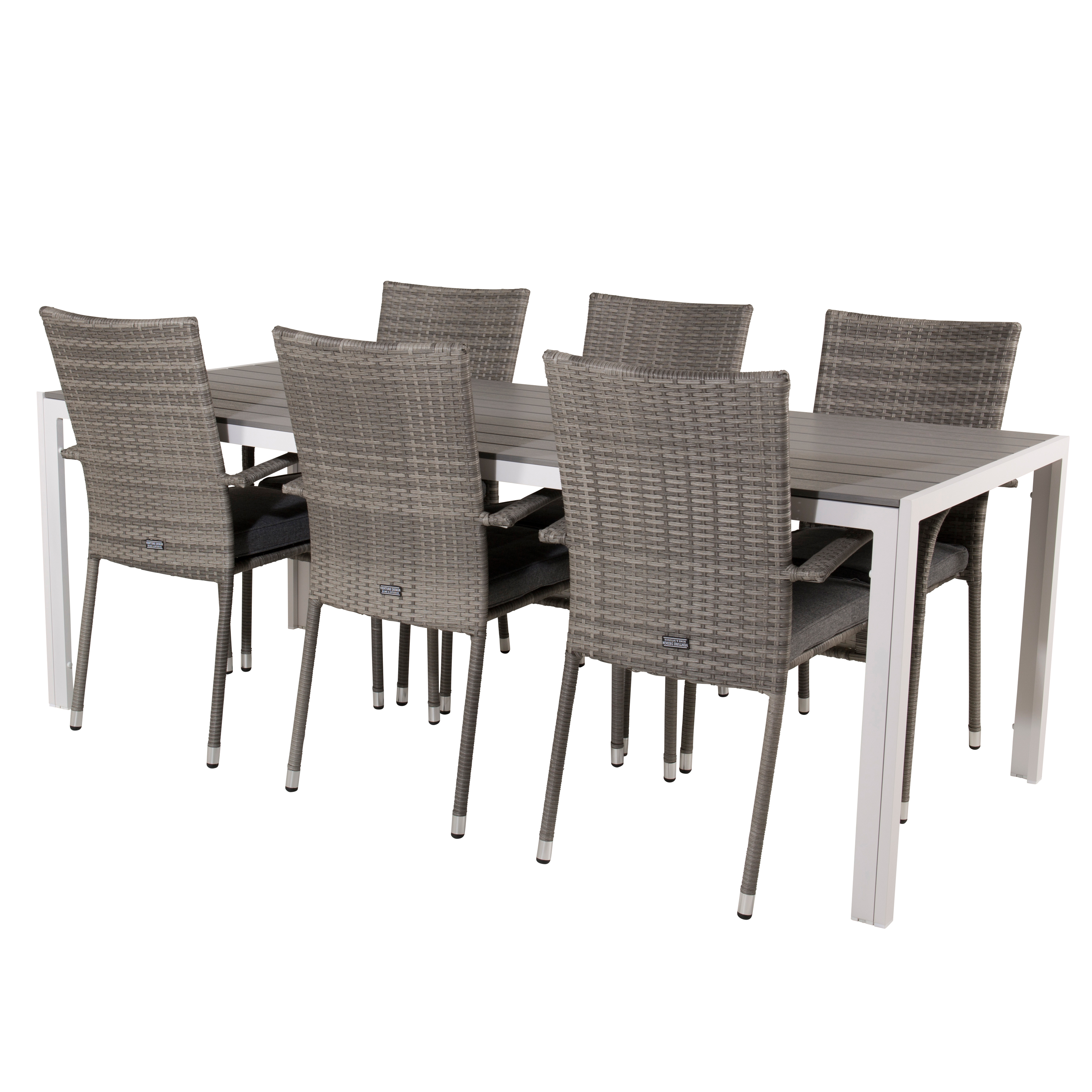 Spisegruppe Venture HomeBreak med 6 Anna StolerGrå Bord med Hvite Bein, Hvit Stol