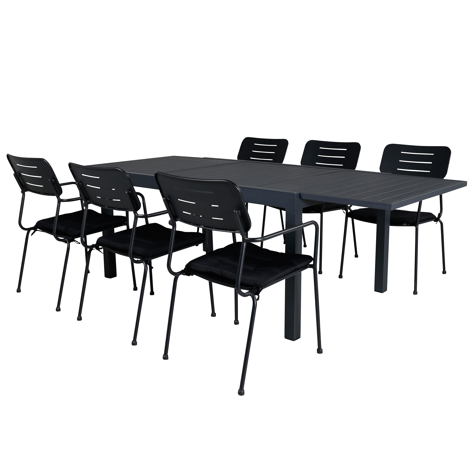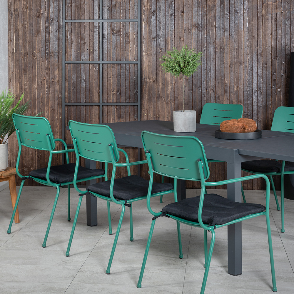 Skap en herlig og innbydende følelse i hagen din med dette stilsikre spisegruppsettet. Spisegruppen Marbella har en bordplate i aluminium. Spisegruppen kommer sammen med 6 Nicke spisestoler med en ramme i stål.