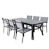 Spisegruppe Vyn med et spisebord i sort aluminium og grått glass. Matches sammen med 6 stk Curz spisestoler med en ramme i sort aluminium. Bord og stol krever enkel montering.