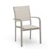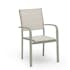 Produsert i aluminium med sete- og rygg i textilene. Stolen er stabelbar for enkel og smidig oppbevaring.