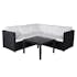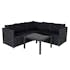 Sofagruppe Kimbali fra Venture Home. Komfortabel og stilig gruppe i svart stål med tilhørende bord og en toppplate i glass. Gruppen har plass til totalt 4 personer. Enkel montering kreves. Holdbare puter er inkludert.