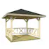 Idyllisk paviljong med kraftig rekkverk på tre sider. Lag din egen oase i hagen. Passer også fint som overbygg over utendørs spa. Leveres som byggesett med kraftig pre-fabrikkert reisverk i limtre inkludert alt av festemidler.