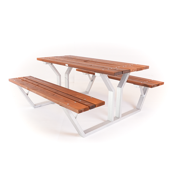 Produsert i stål, med bord og benker i svensk kjernefuru fra Norrland, FSC ®-merket.