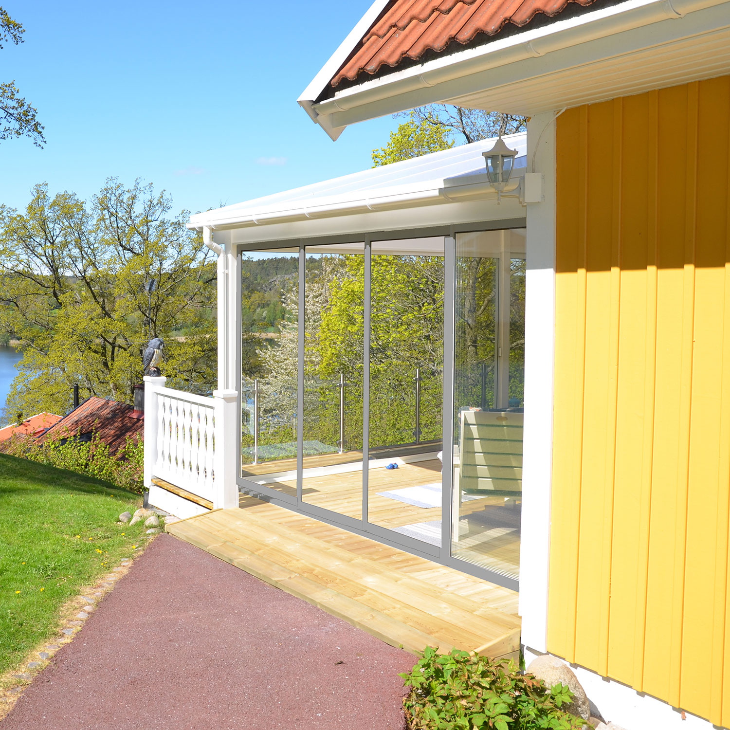 Et uteromsprodukt fra Landskap gir deg trygghet og kvalitet. Landskap of Sweden garanterer deg et produkt som varer i mange år. Hver komponent er av høyeste kvalitet, noe som gjør at de kan gi deg 5 års garanti på Stadig skyvbare og faste uteroms paneler.