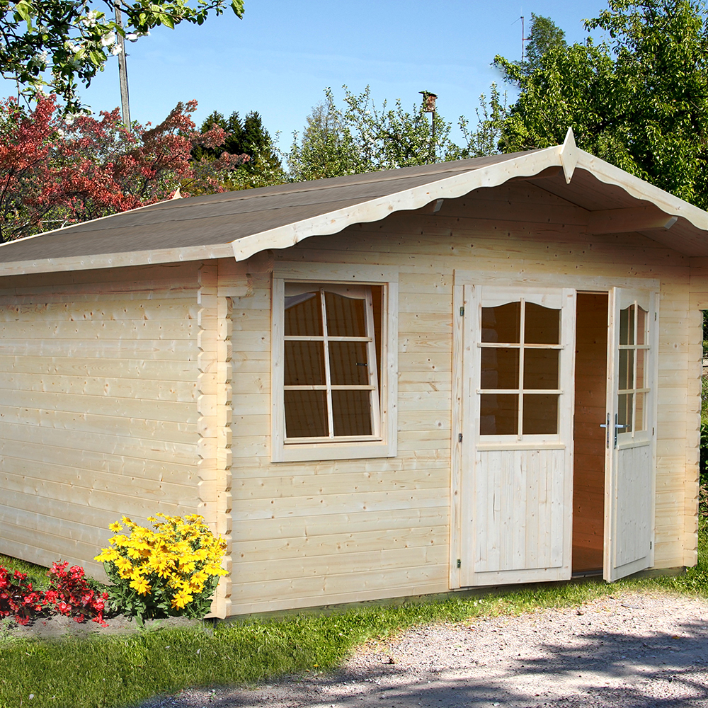 Koselig og romslig laftet Gjestehytte. Perfekt som ekstrarom til tenåringen, familie eller venner. Kan også benyttes til oppbevaring av hagemøbler m.m. på vinteren.