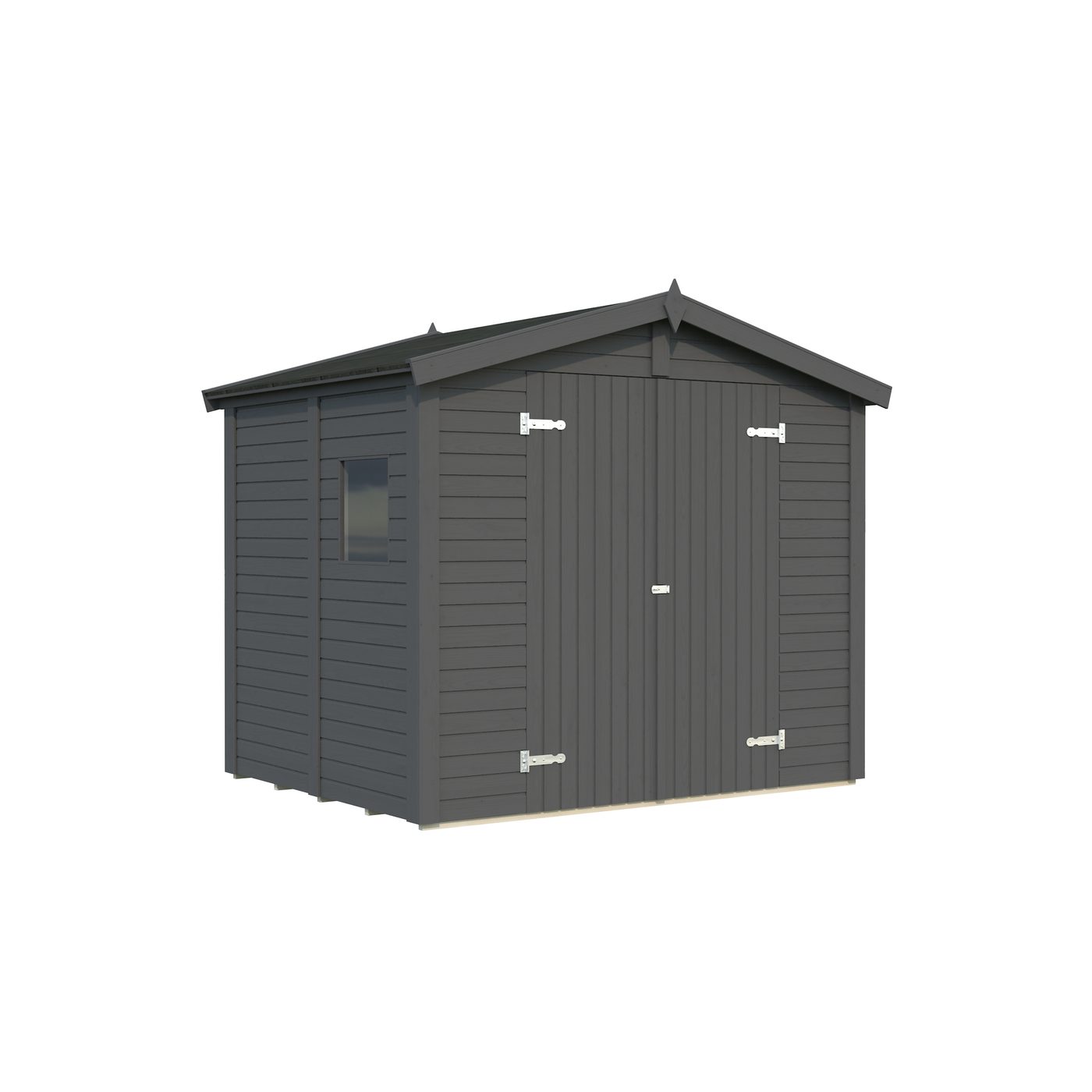 Leveres som byggesett inkludert gulv og alt av festemidler. Valgfritt taktekke kjøpes separat. Boden leveres ubehandlet, og vi anbefaler å overflatebehandle den i ønskede farger umiddelbart etter montering for å beskytte treverket mot fukt, sopp m.m. Husk å male døra på begge sider.