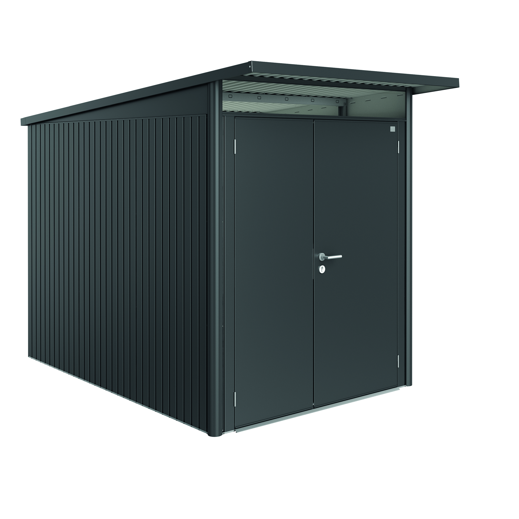 Redskapsbod Biohort AvantGarde A3 Dobbeldør er en redskapsbod med pulttak av høy kvalitet. AvantGarde® er en ekstremt robust og stabil bod i metall.