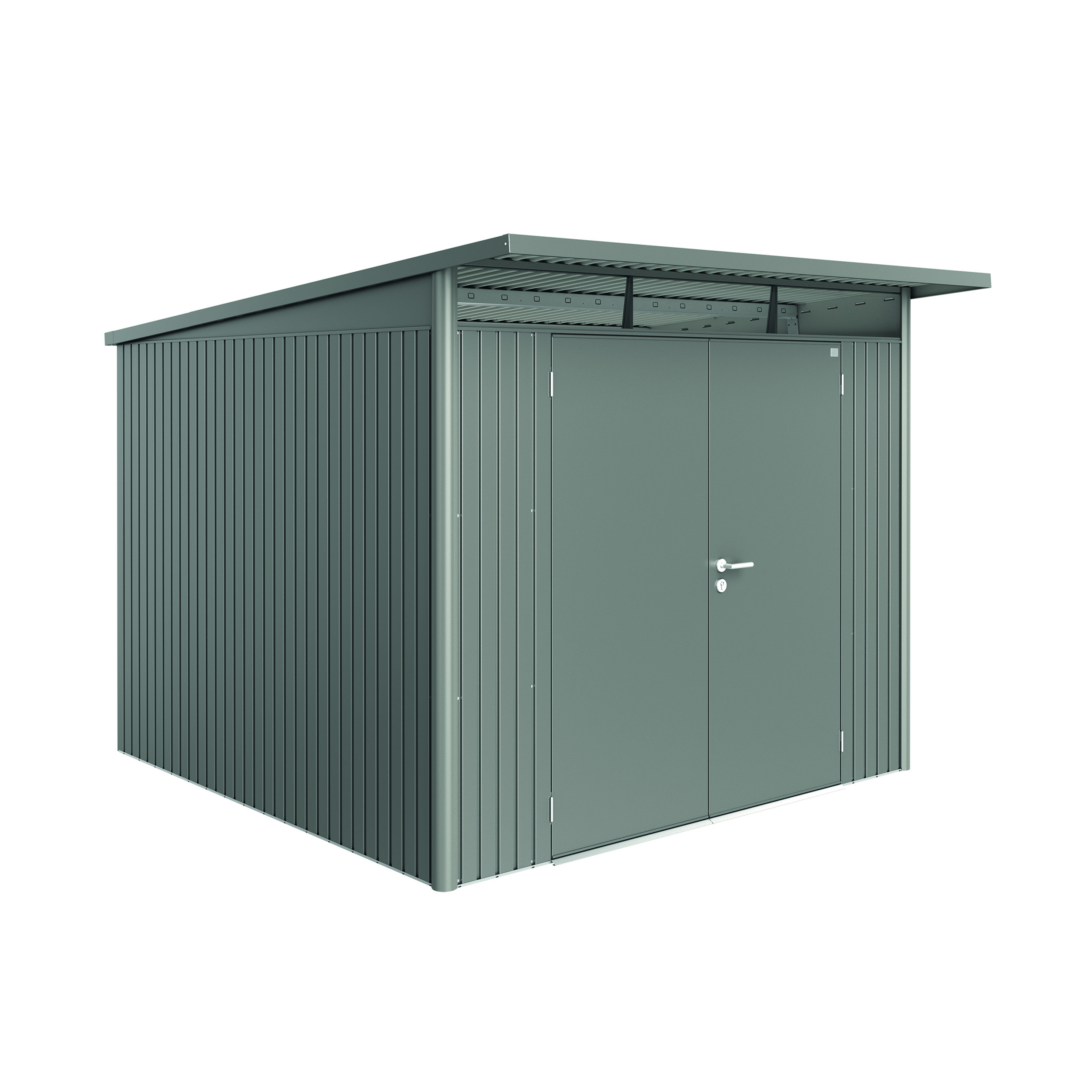 Redskapsbod Biohort AvantGarde A7 Dobbeldør er en redskapsbod med pulttak av høy kvalitet. AvantGarde® er en ekstremt robust og stabil bod i metall.