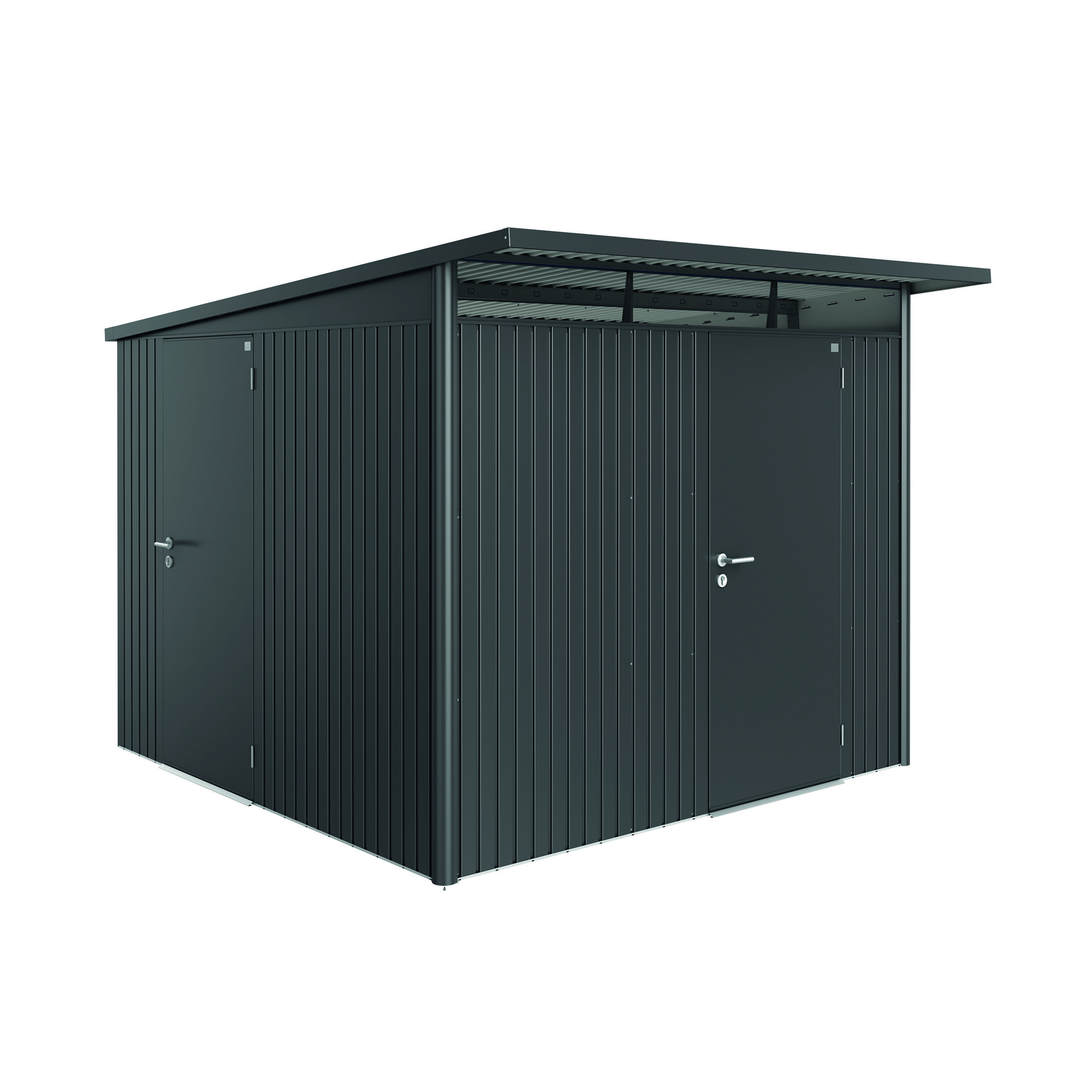 Redskapsbod Biohort AvantGarde A7 er en redskapsbod med pulttak av høy kvalitet. AvantGarde® er en ekstremt robust og stabil bod i metall.