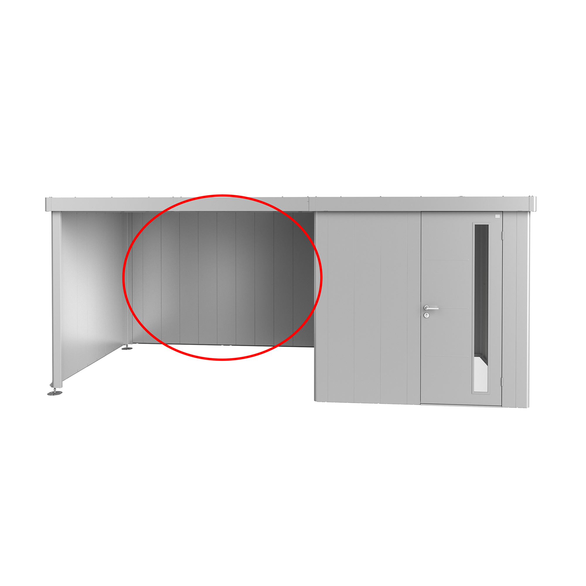 Du kan feste en bakvegg og/eller en sidevegg til sidetaket på din Redskapsbod Neo fra Biohort.