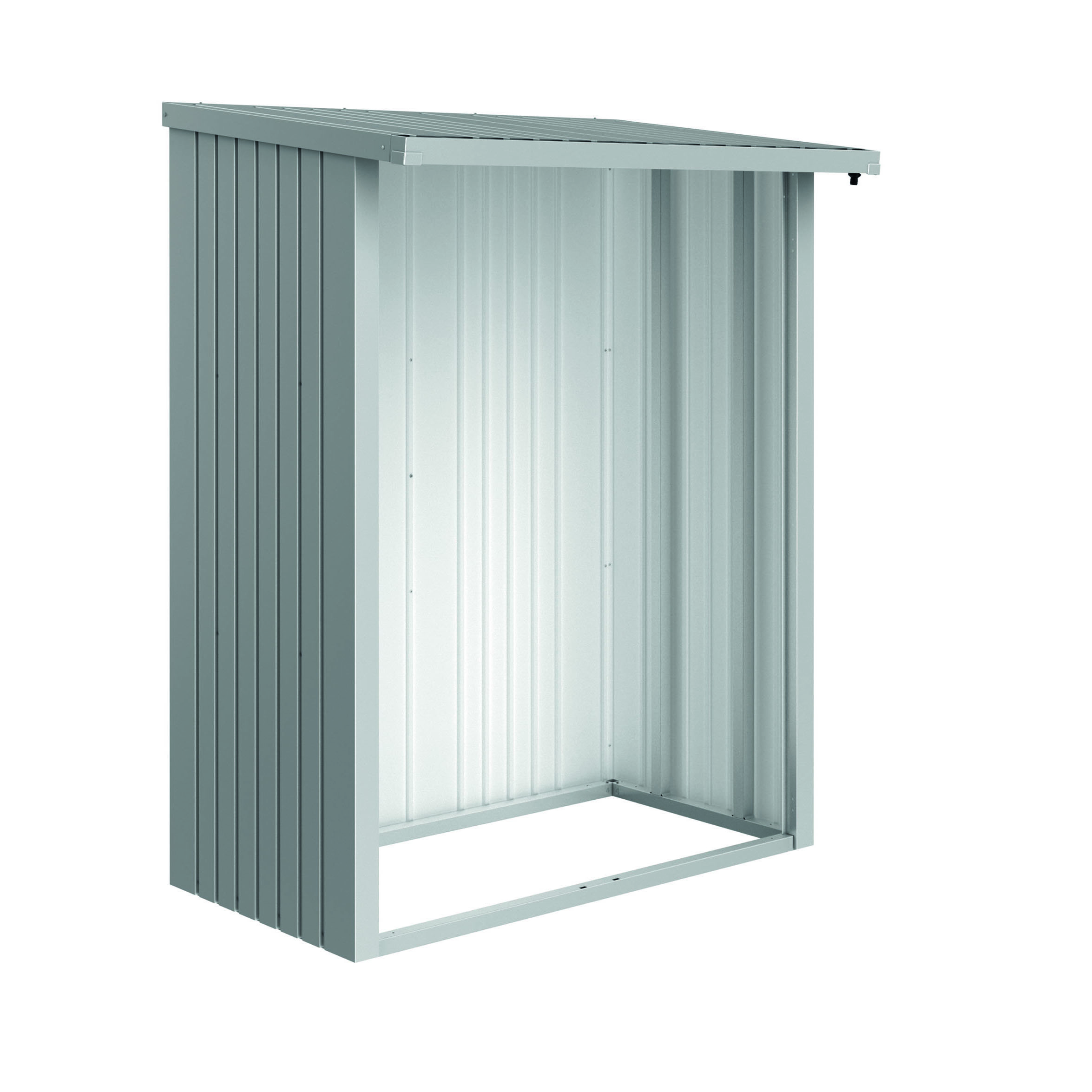 Bakvegg Biohort Woodstock 150 som er tilpasset Vedskjul Woodstock og er produsert av varmforsinket, polyamidbrennlakkerte stålplater.