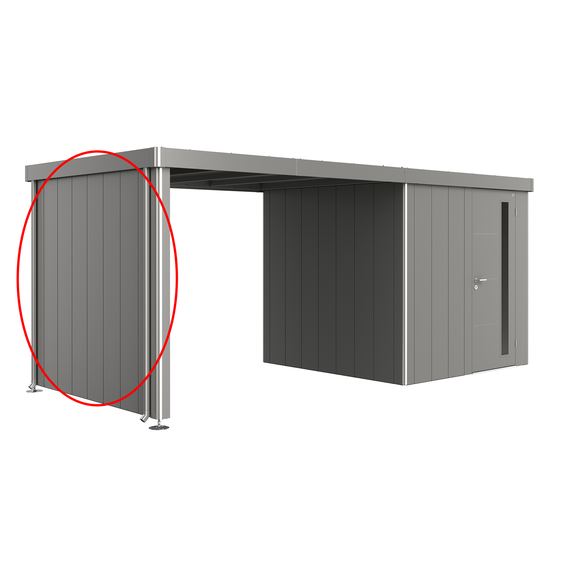 Du kan montere en sidevegg og/eller en bakvegg til sidetaket på din redskapsbod fra Biohort av modellen Neo 2A/2B/2C/2D.
