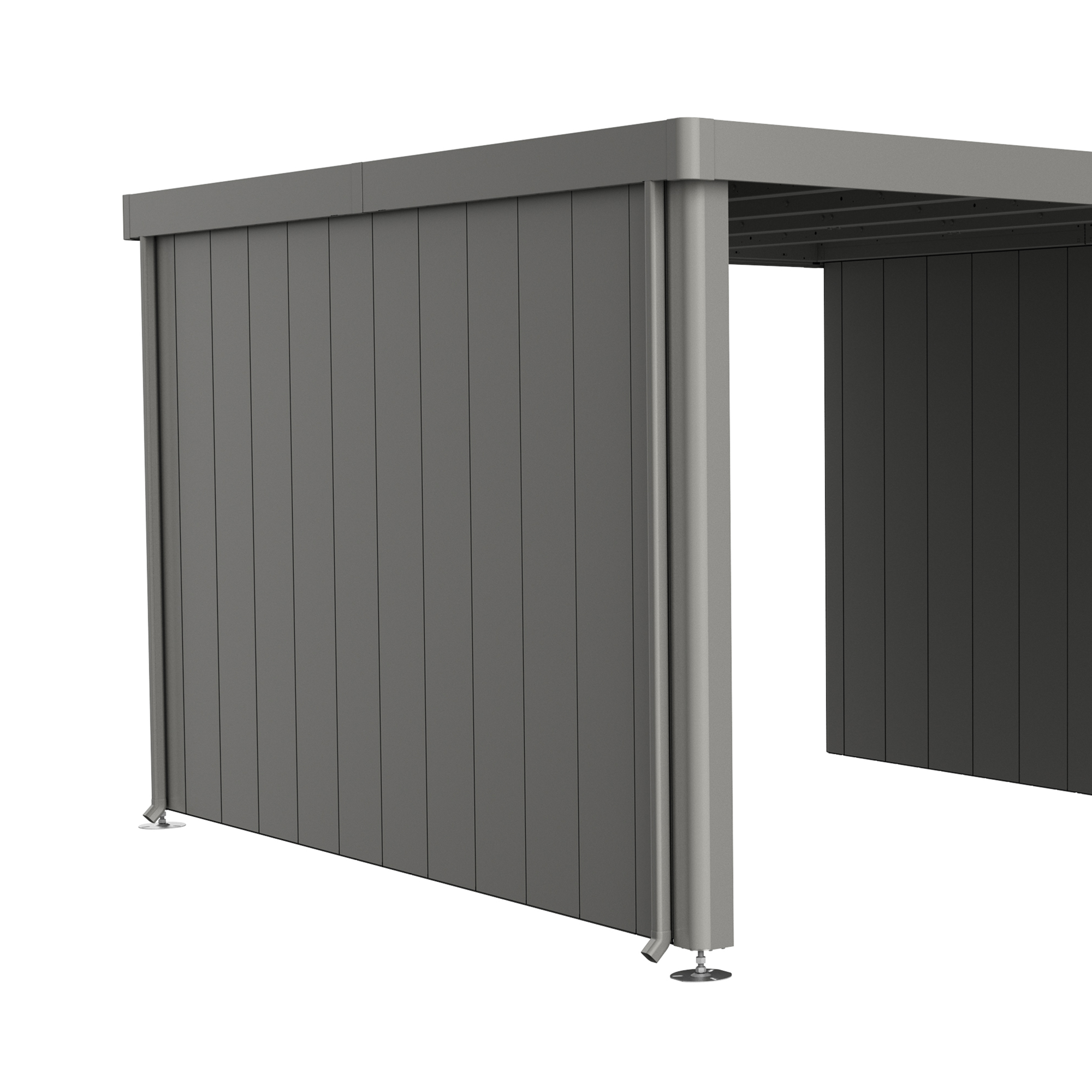 Du kan montere en sidevegg og/eller en bakvegg til sidetaket på din redskapsbod fra Biohort av modellen Neo 2A/2B/2C/2D.