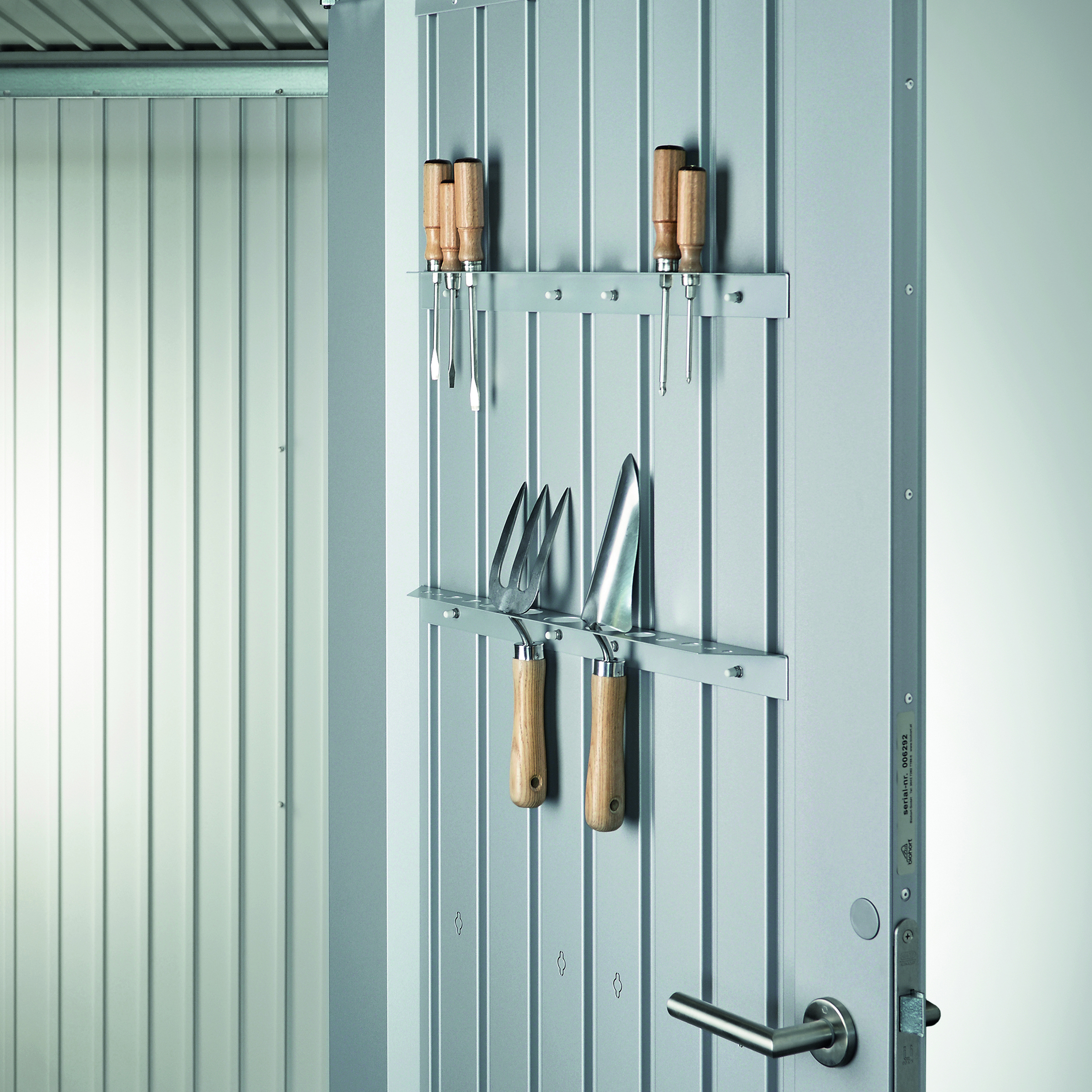 Verktøyholder fra Biohort tilpasset modellene AvantGarde, HighLine og Panorama, og som plasseres på innsiden av dørene. Maksimalt 4 verktøyholdere kan monteres pr dør.