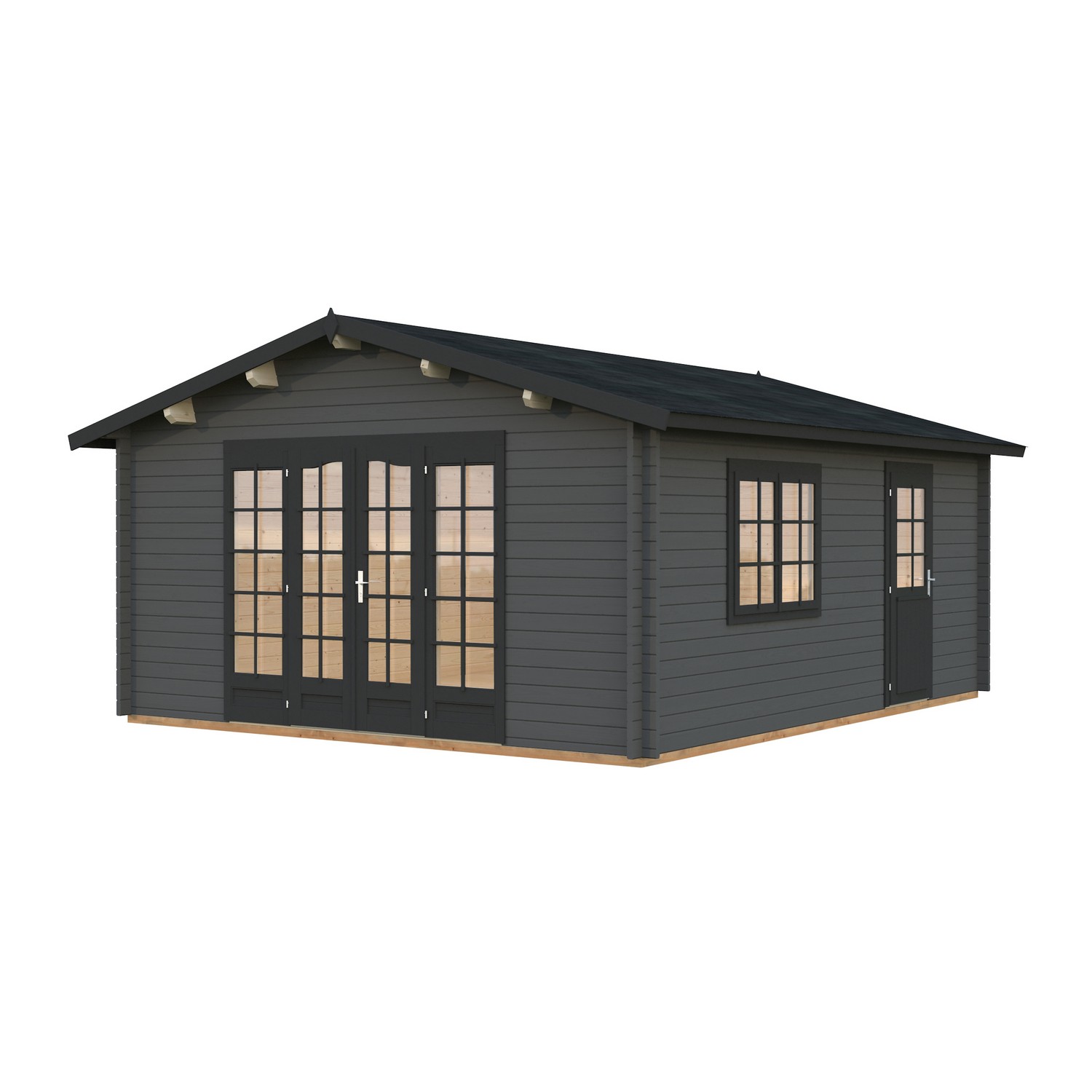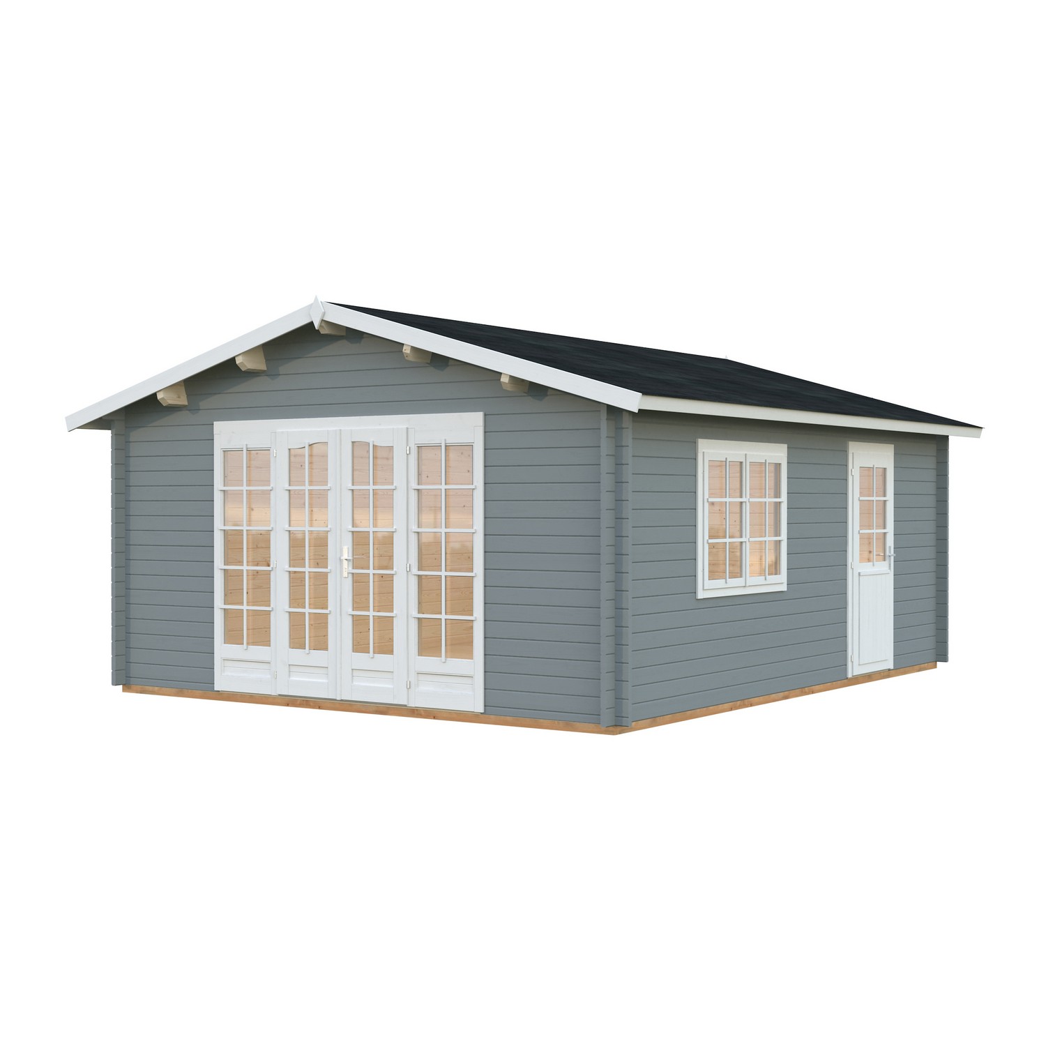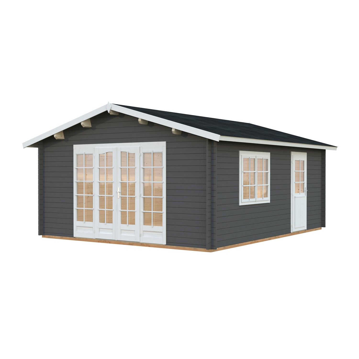 Anneks med overbygget inngangsparti i 44 mm laft. Dobbel inngangsdør og 3 åpningsbare vinduer. Perfekt som ekstrarom til tenåringen, familie eller venner. Kan også benyttes til oppbevaring av hagemøbler m.m. på vinteren. Leveres som byggesett inkludert gulv og alt av festemidler.
