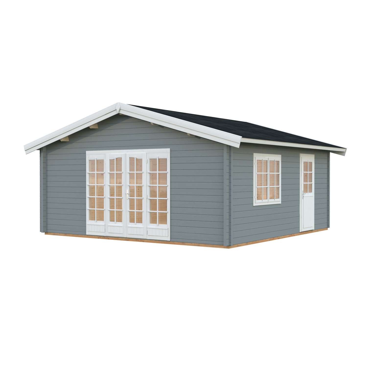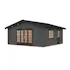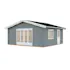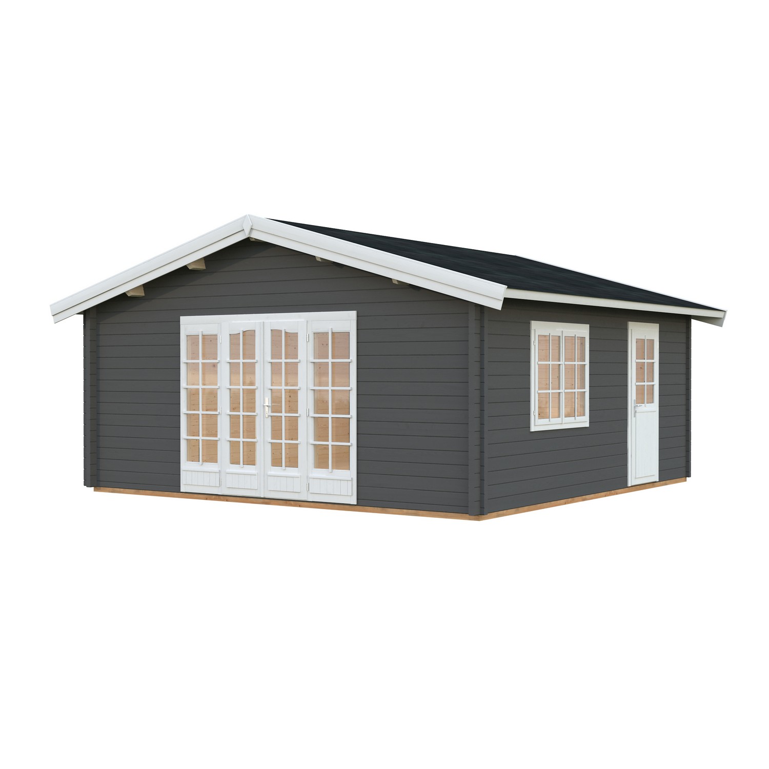 Vinklet anneks i 70 mm laft. Store vinduer i gavelveggen gir et lyst og trivelig innemiljø. Dobbel dør samt separat inngangsdør under tak. Vinduer er med isolerglass. Perfekt som ekstrarom til tenåringen, familie eller venner. Kan også benyttes til oppbevaring av hagemøbler m.m. på vinteren. Leveres som byggesett inkludert gulv og alt av festemidler. Kan bygges speilvendt.