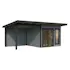 Den moderne hagestuen Aurelia 8,4 + 7,9 m² er en allsidig utebygning, utviklet for et moderne og komfortabelt uteliv. Stuen har en praktisk hoveddel på 8,4 m² samt en sidekonstruksjon på 7,9 m² med bakvegg, perfekt som en skyggefull sitteplass eller til oppbevaring.