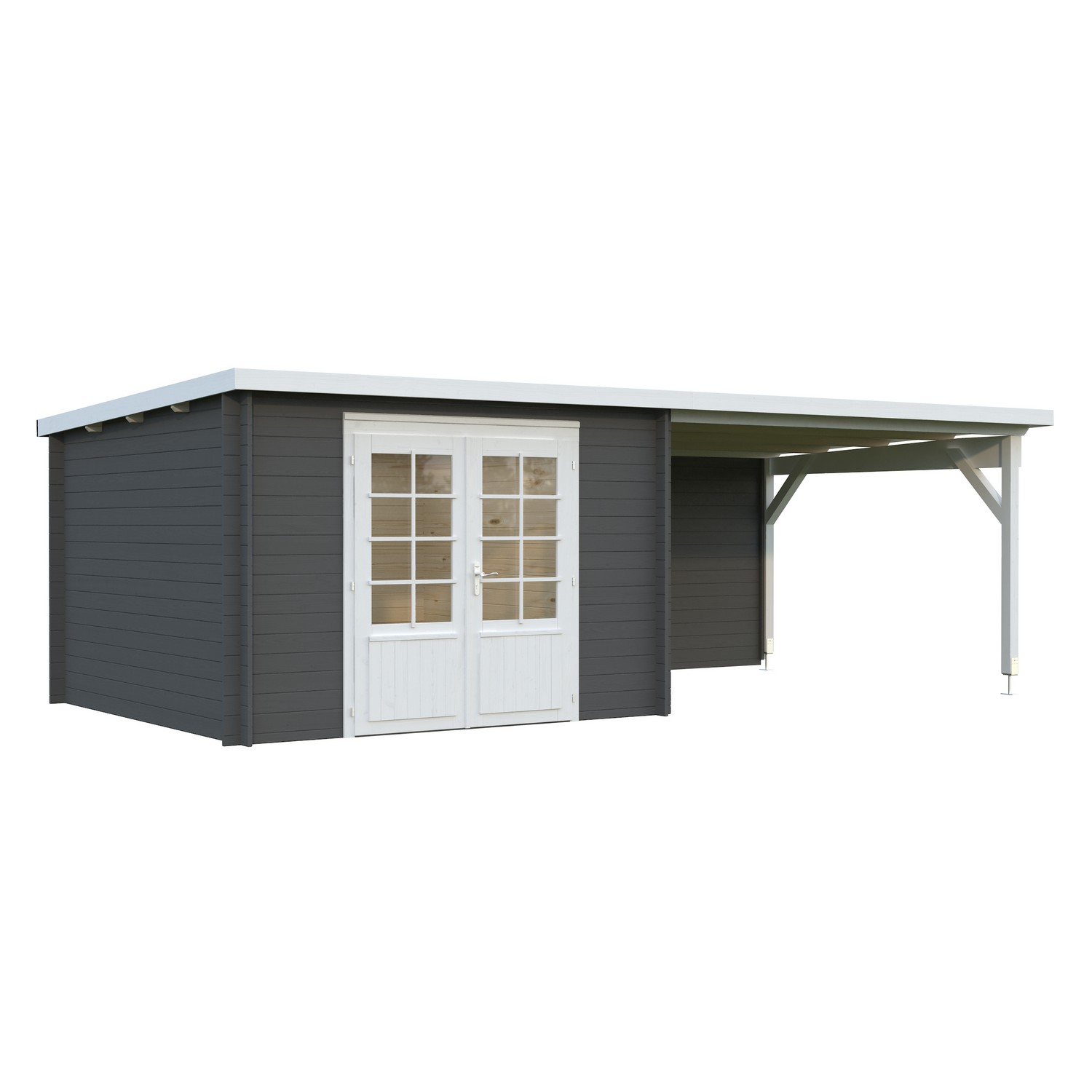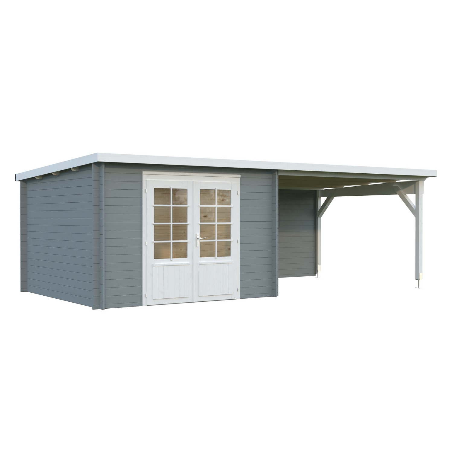 Valgfritt taktekke kjøpes separat. Annekset leveres ubehandlet, og vi anbefaler overflatebehandle det i ønskede farger umiddelbart etter montering for å beskytte treverket mot fukt, sopp m.m. Det er en fordel å grunne laftebordene før montering for optimal beskyttelse i laftesporene. Husk å male døra på begge sider.