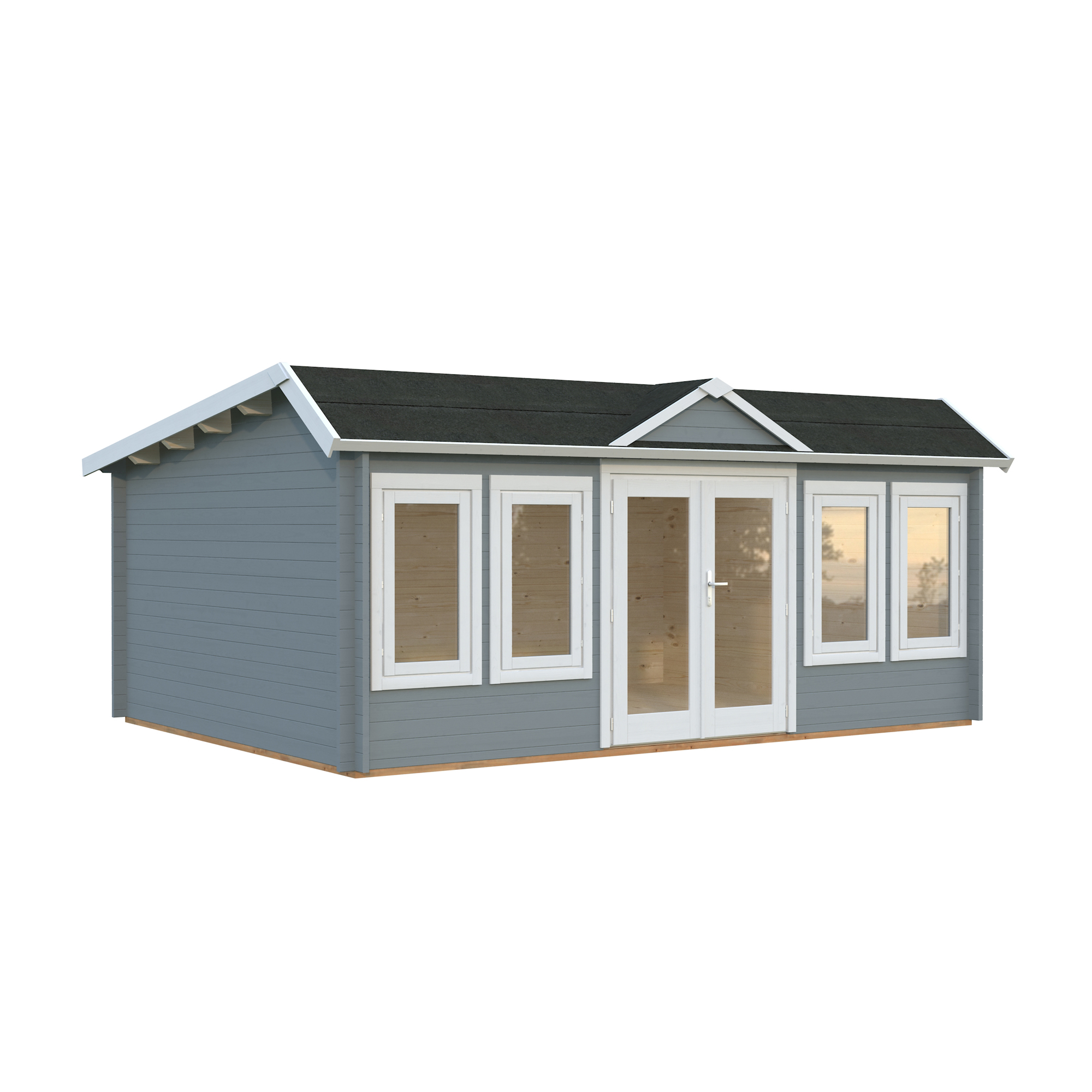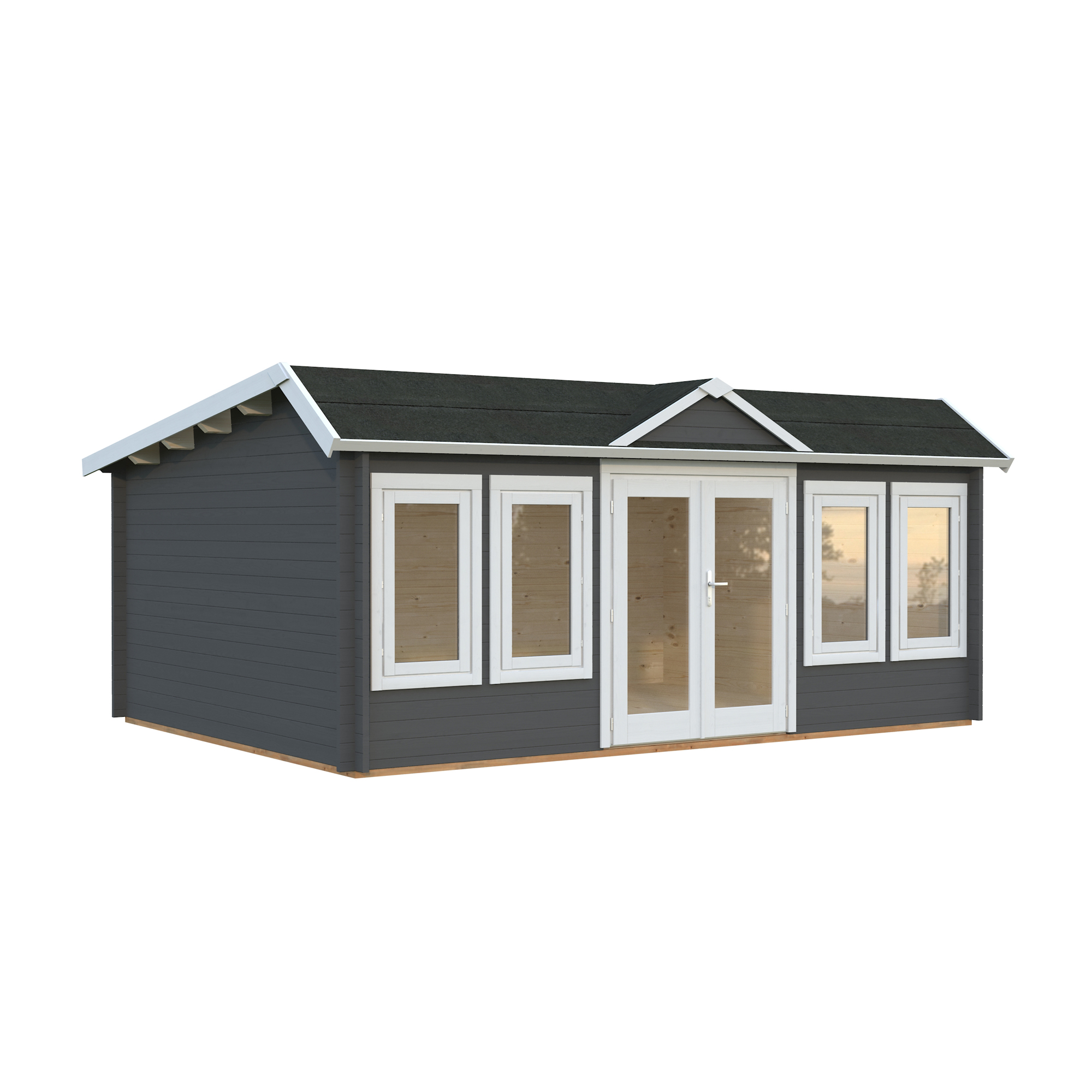Palmako sin hytte Claudia 19,4 m² har et takdesign i klassisk klokkehusstil. Mens mange kunder setter pris på det elegante taket i viktoriansk stil, foretrekker andre et enklere tak. Av denne grunn er montering av takkvisten valgfri.
