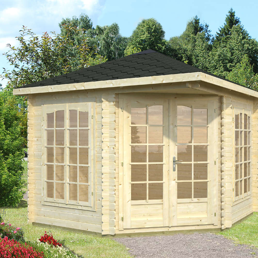 Lysthuset er laget av saktevoksende nordisk gran, et holdbart materiale av høy kvalitet og spesielt tilpasset de tøffe norske værforholdene. Å bruke laftekonstruksjon er den mest tradisjonelle måten å bygge hytter på, og har fortsatt mange fordeler, som for eksempel at du helt unngår å bruke skruer og spiker for å sette sammen veggene. En teknikk som er enkel selv for deg helt uten byggeerfaring. Hytta leveres i deler som laftes sammen, og med alle nødvendige festeelementer inkludert. Alle andre detaljer er ferdigkappet, noe som gjør den enkel å sette sammen på riktig måte. 5 års garanti.
