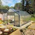 Dette drivhuset er laget av 6 mm kanalplast og en aluminiumsramme med 1,5 mm godstykkelse. Sokkelen er i galvanisert stål som er motstandsdyktig mot korrosjon. Sokkelen har forankringsjern som gjør at du kan støpe drivhuset fast i bakken hvis du ønsker det.