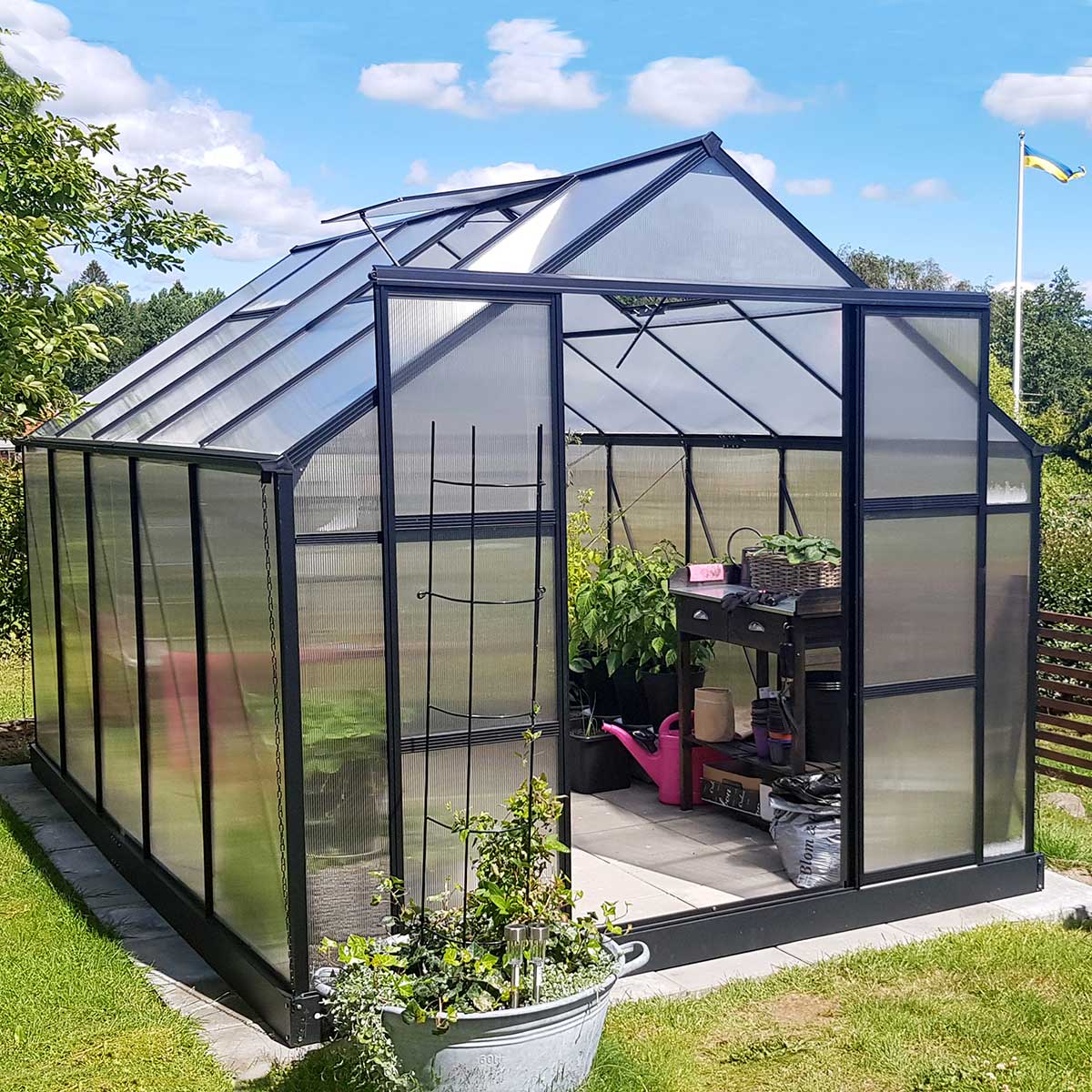 Stort drivhus på 8,9 kvm med generøse mål og høy kvalitet på materialene, tilpasset for norske forhold.