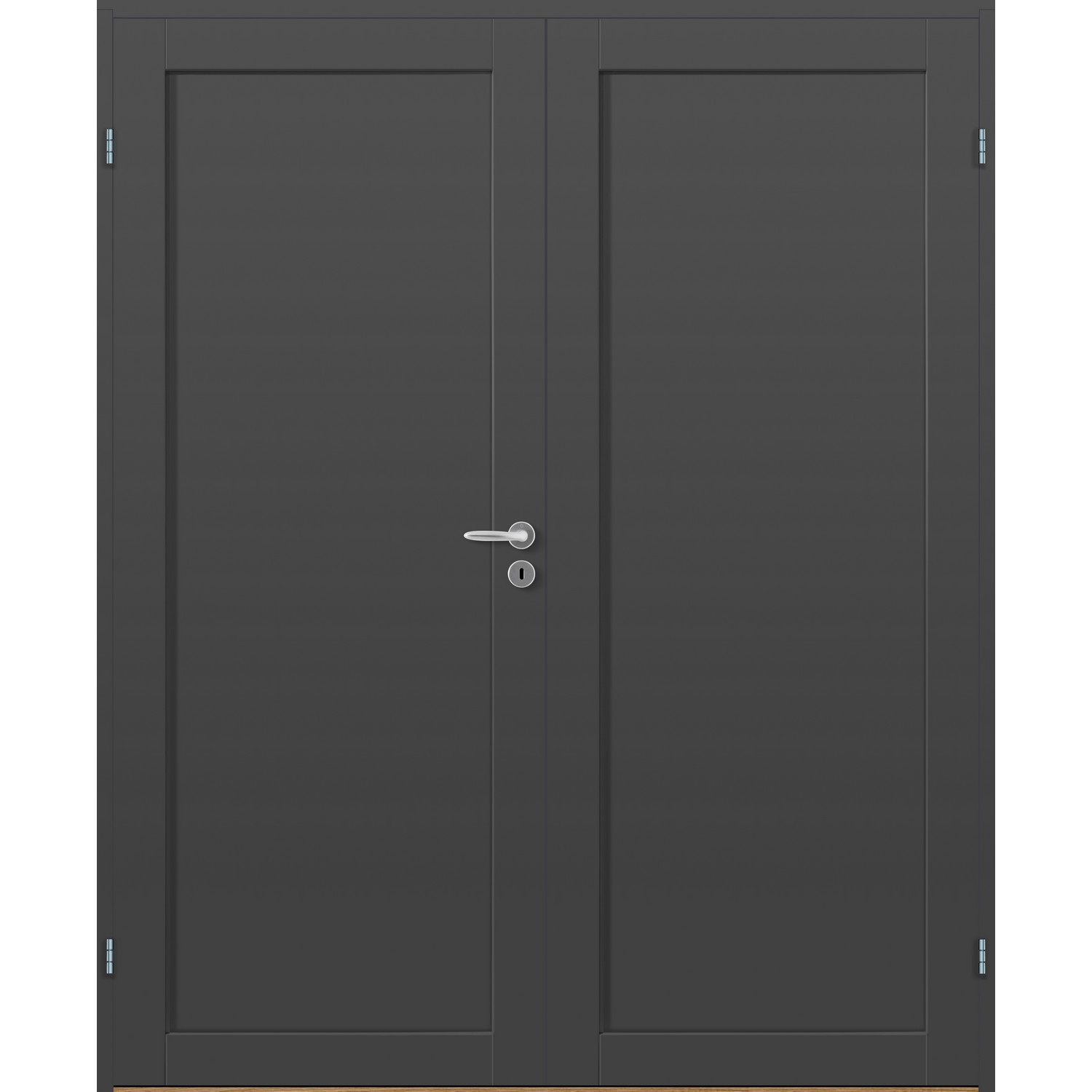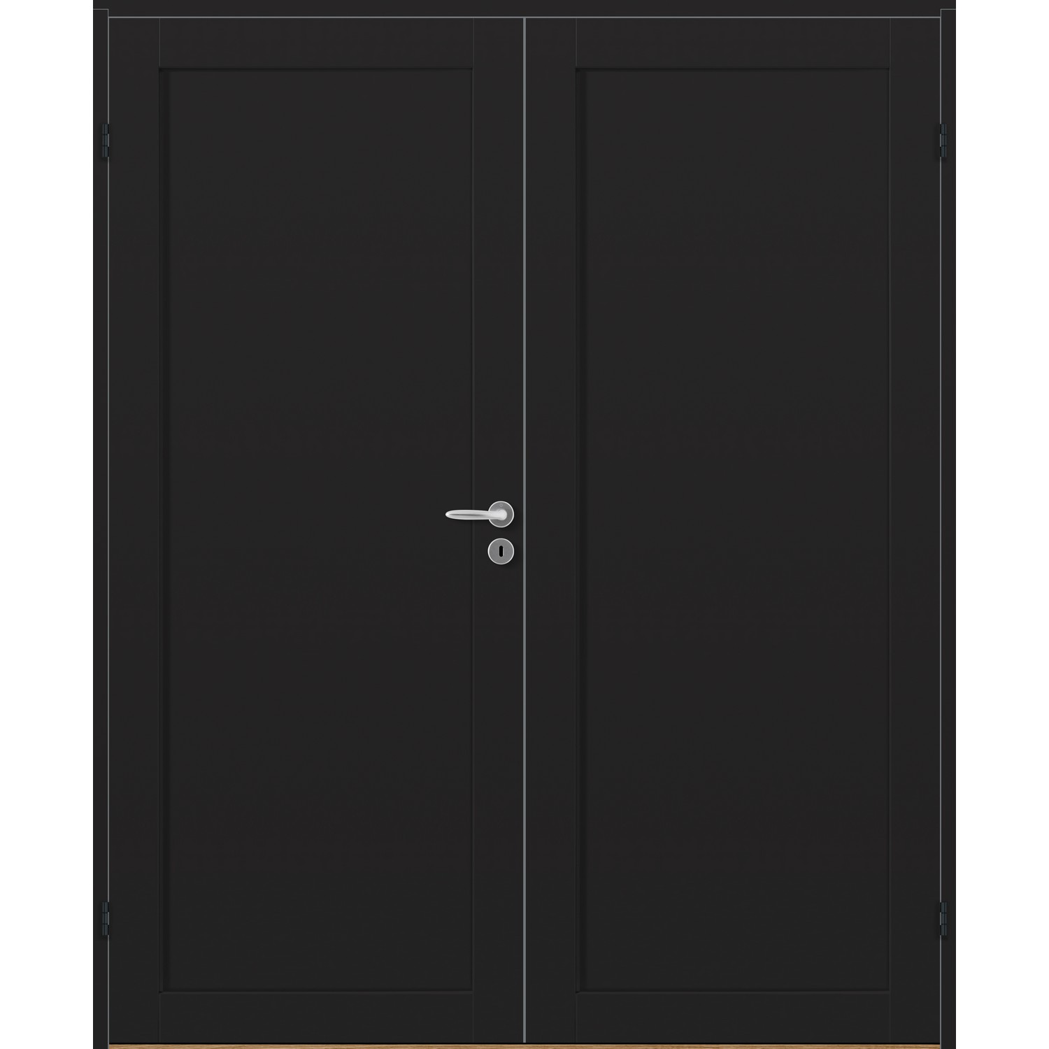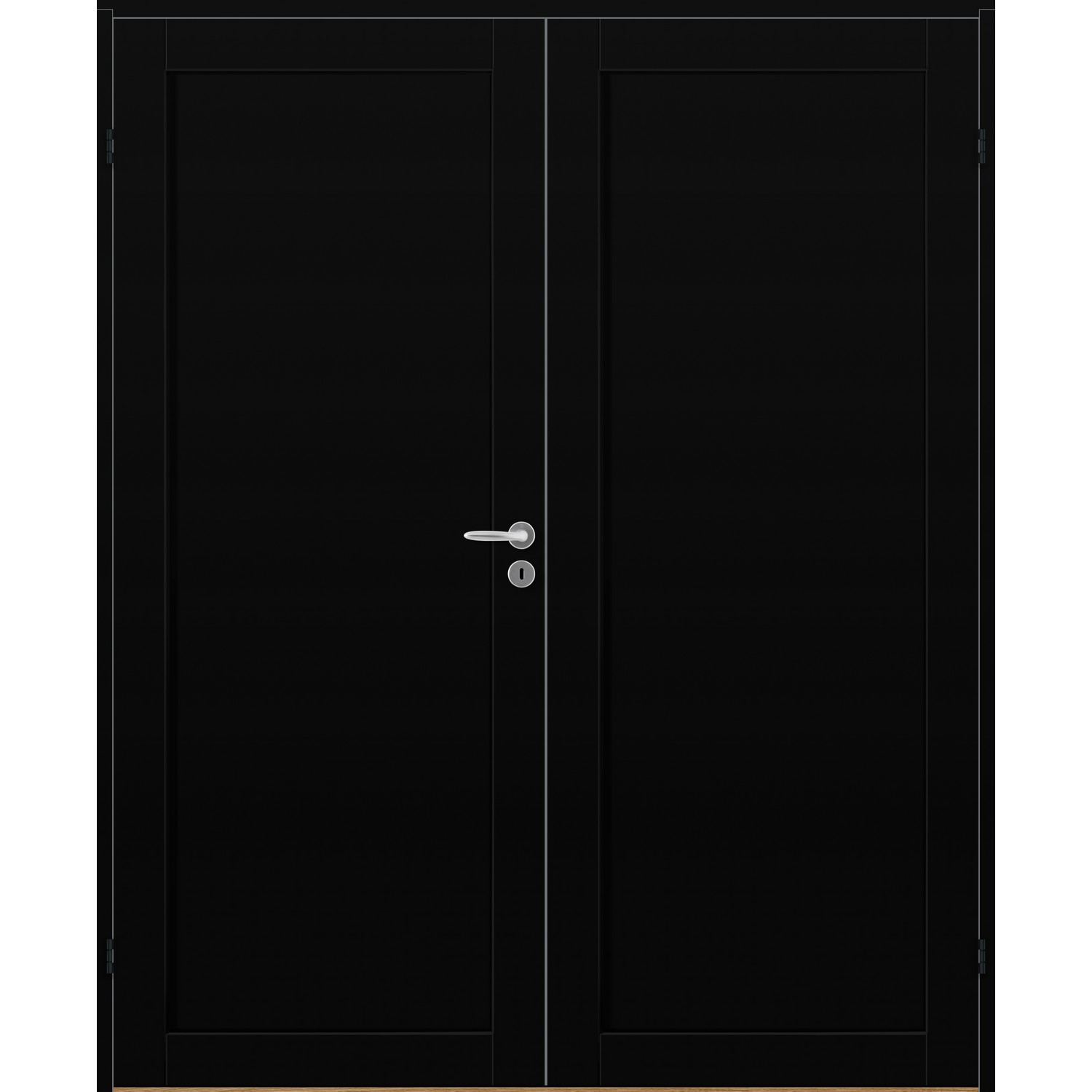 Tofløyet Dør Bygg1 Base 1 er en moderne og minimalistisk tofløyet likedelt innerdør med ett stort speil pr dørblad.