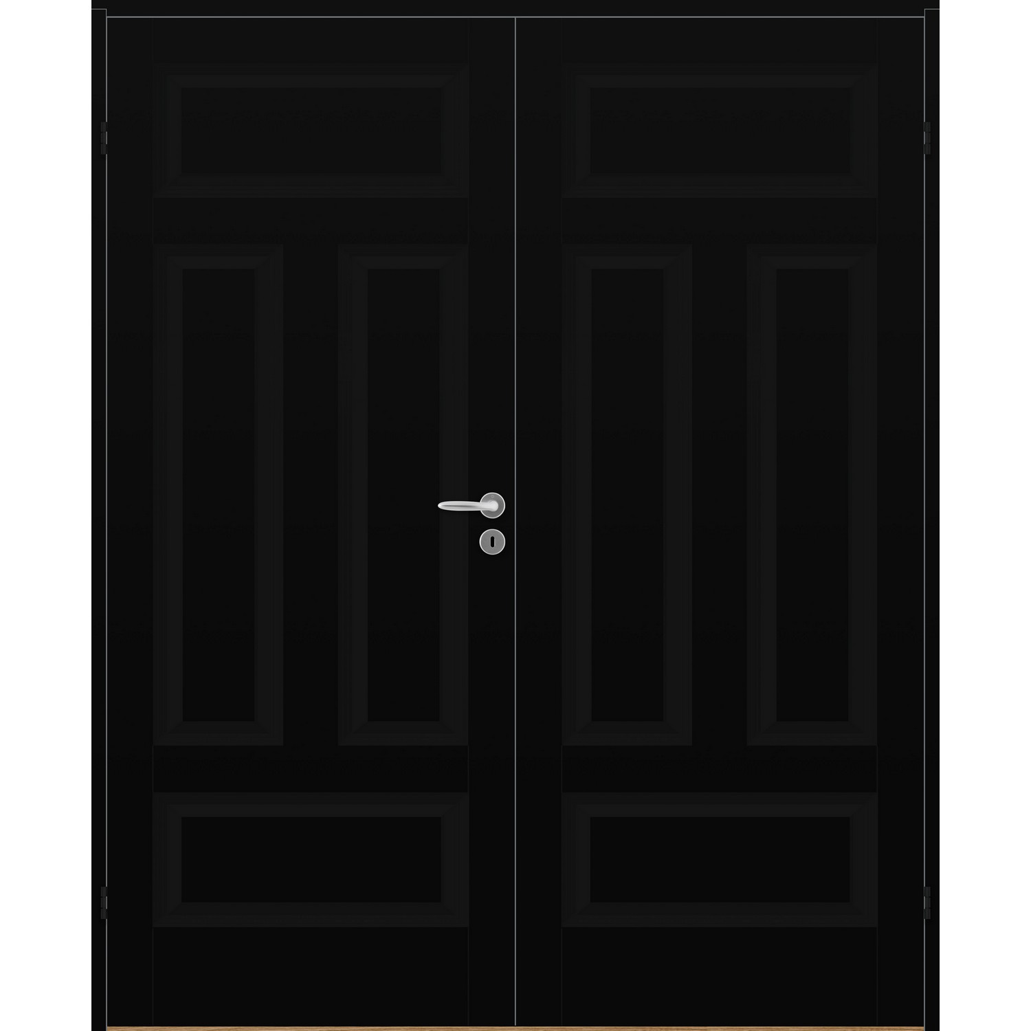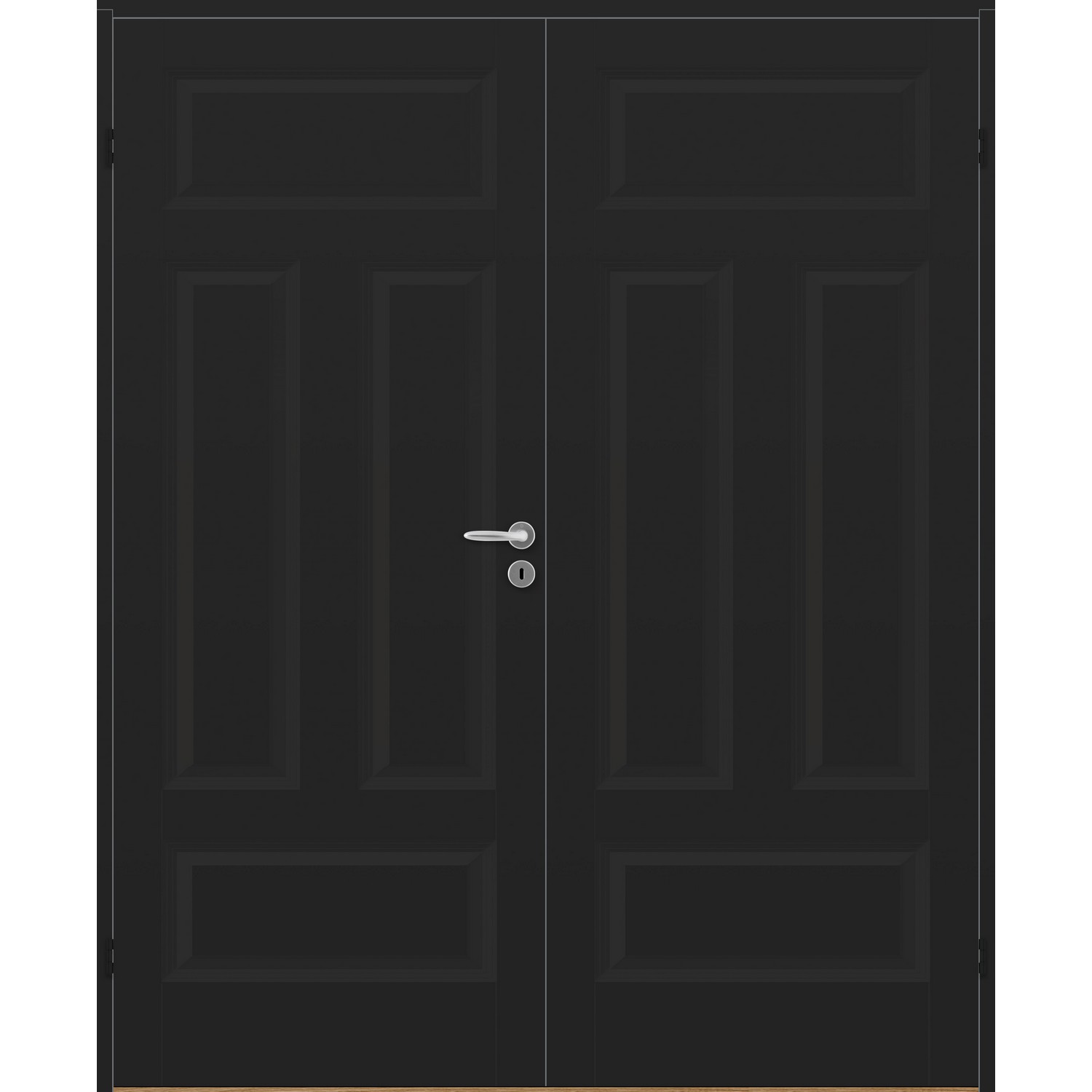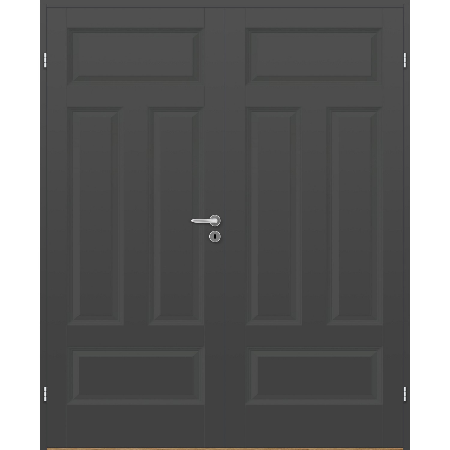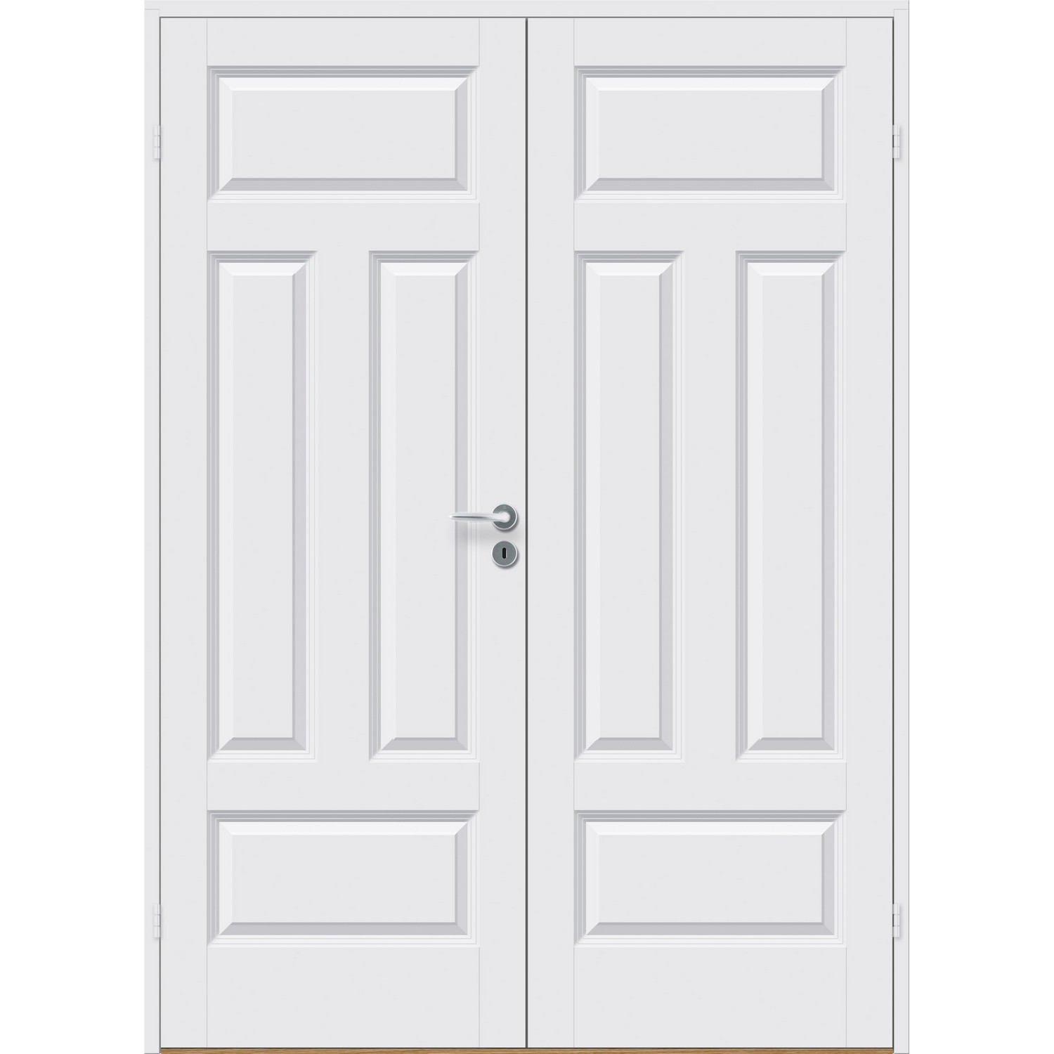 Dobbel innerdør leveres med automatisk lik deling mellom dørbladene. Ønsker du en annen løsning, ber vi deg kontakte kundeservice for å få et riktig tilbud på dør med hengslet sidepanel.