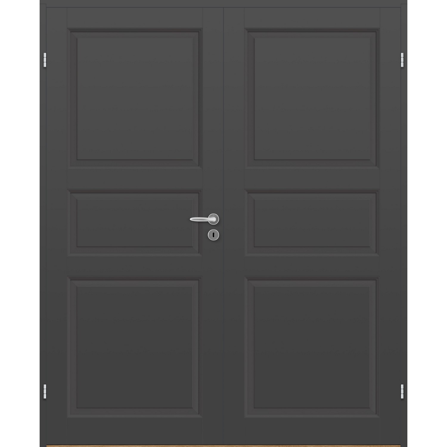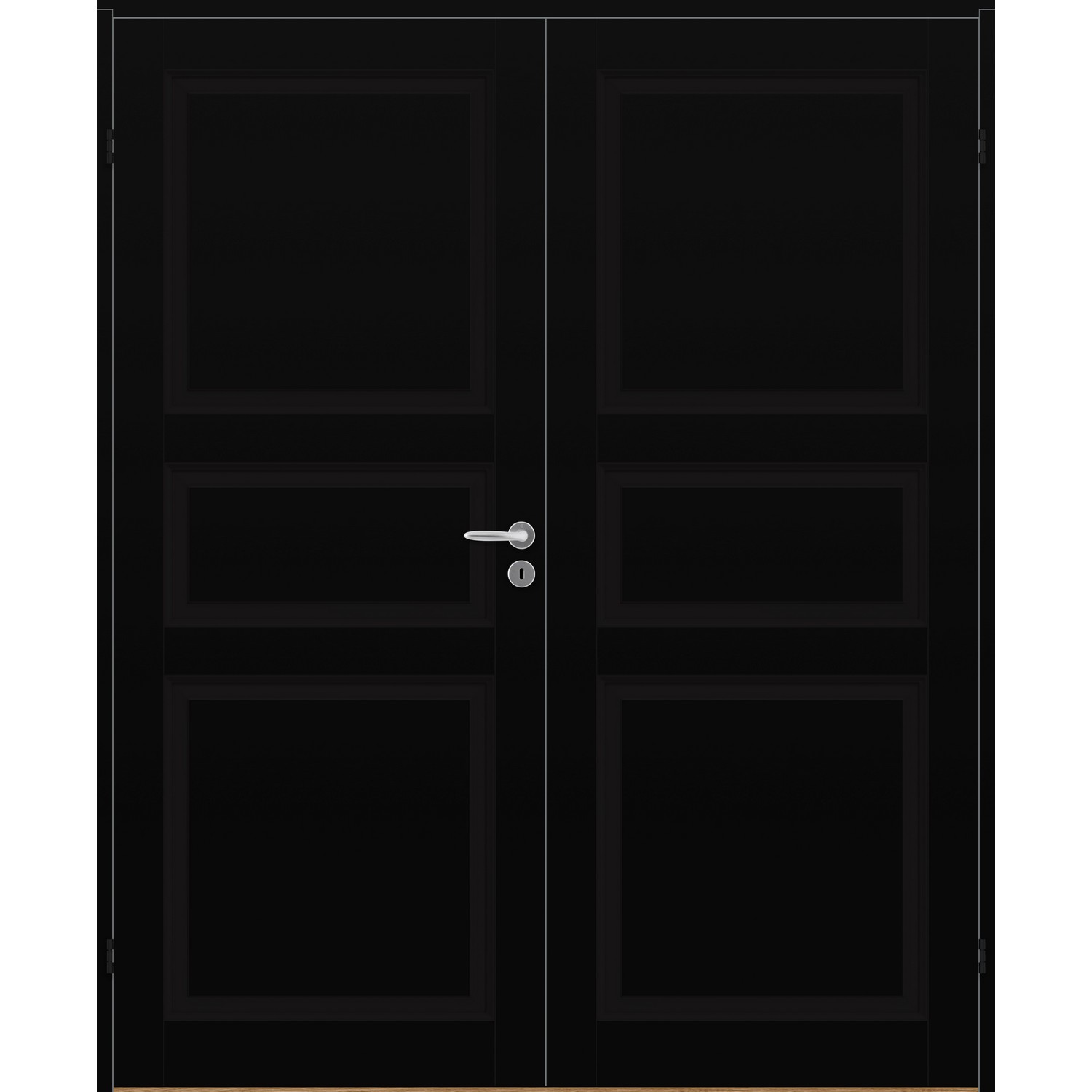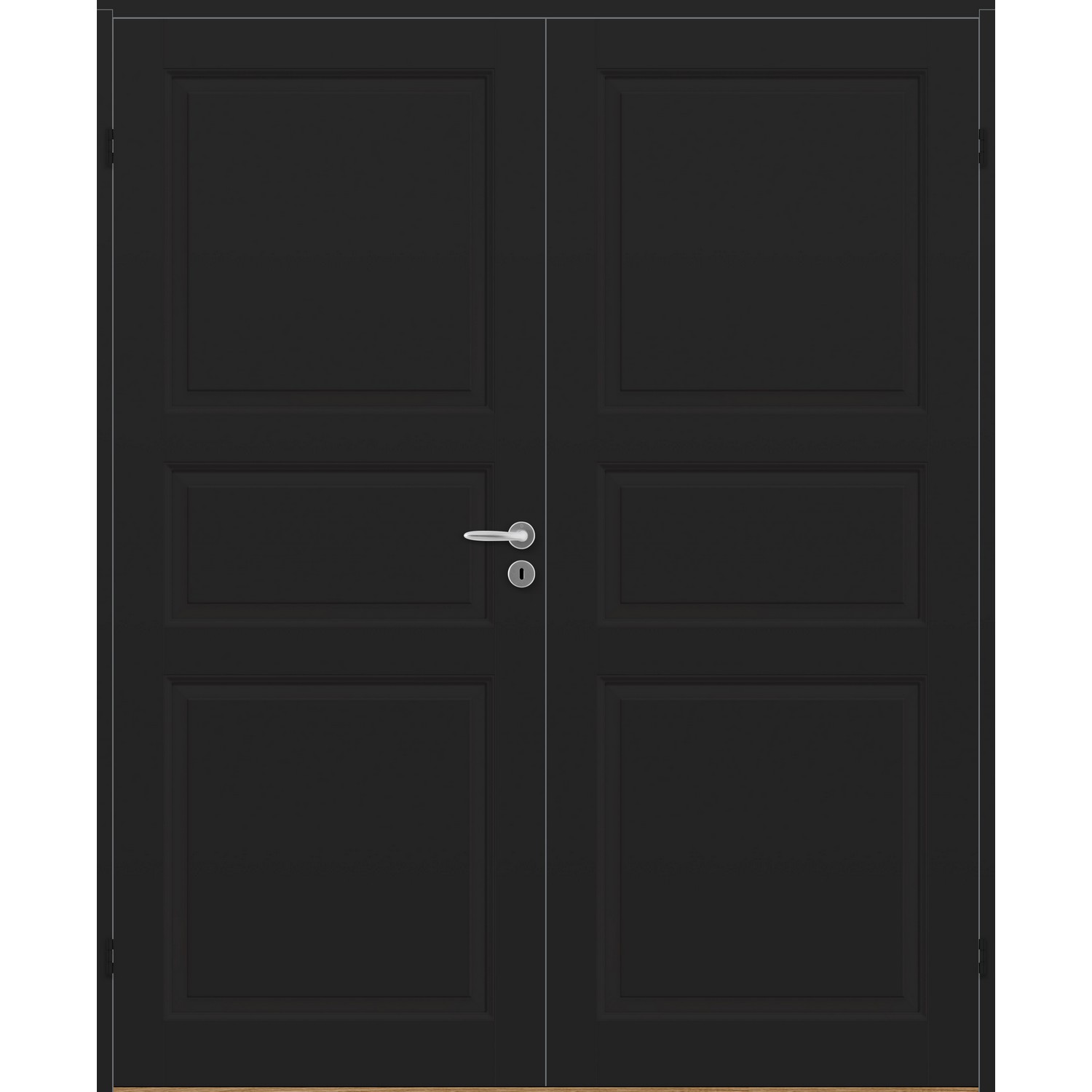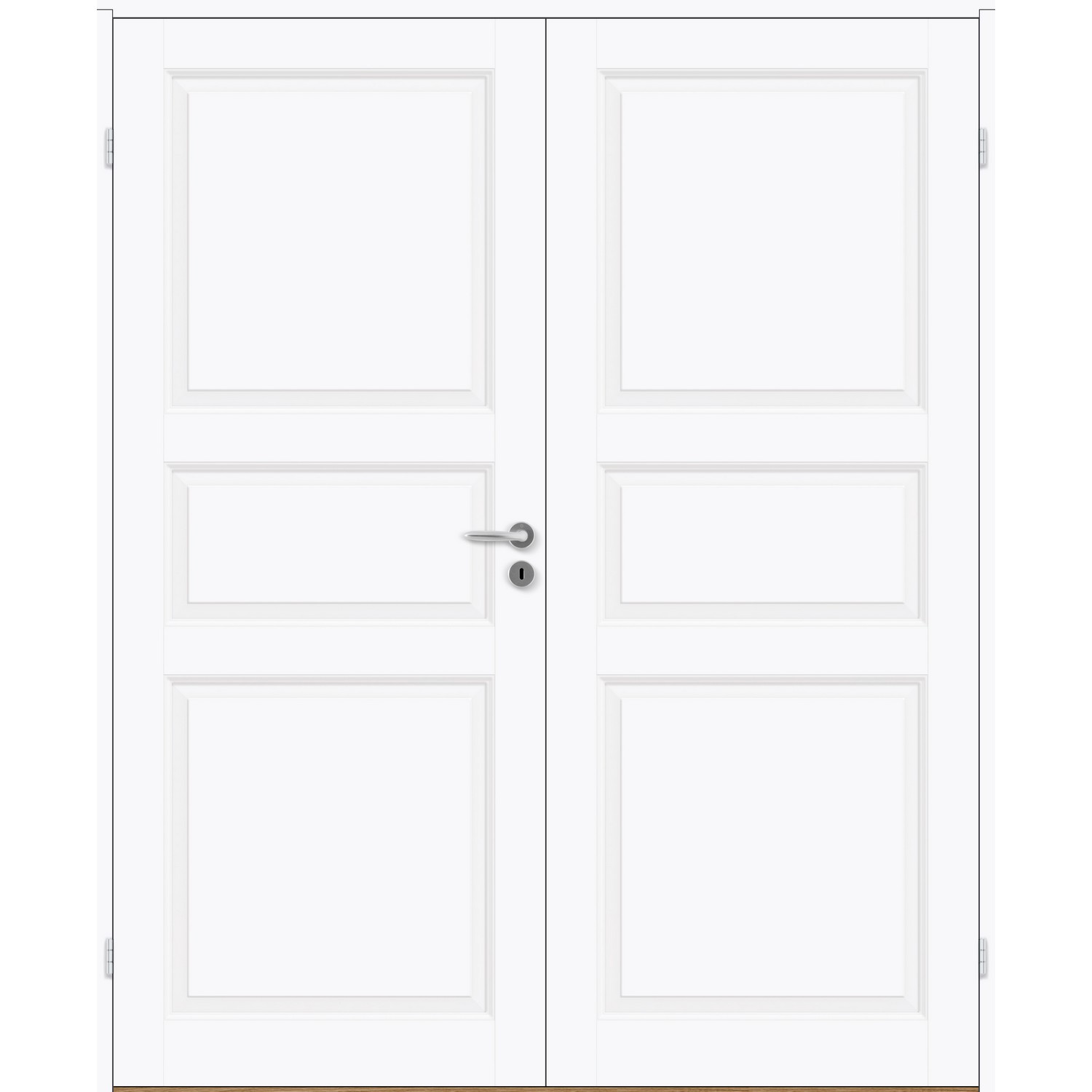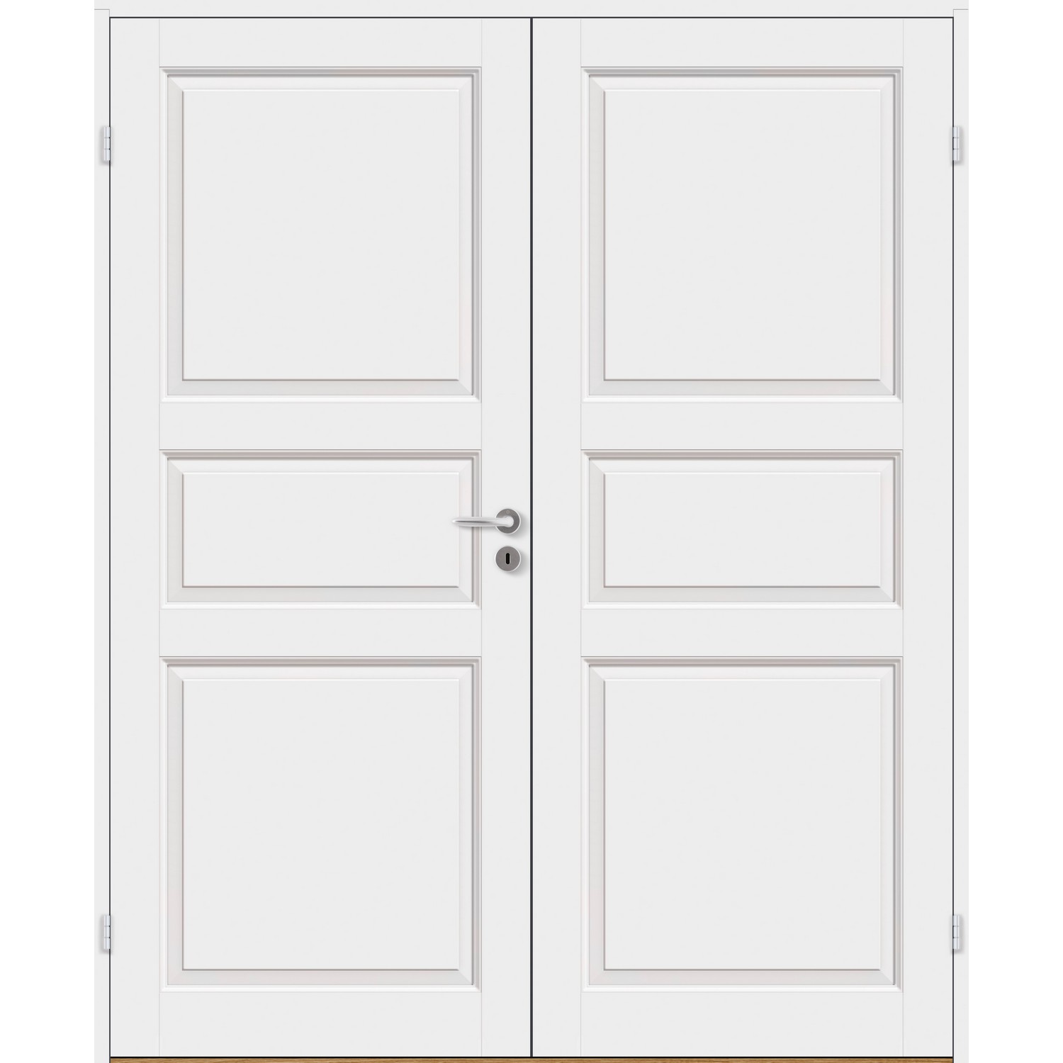 Dobbel innerdør leveres med automatisk lik deling mellom dørbladene. Ønsker du en annen løsning, ber vi deg kontakte kundeservice for å få et riktig tilbud på dør med hengslet sidepanel.