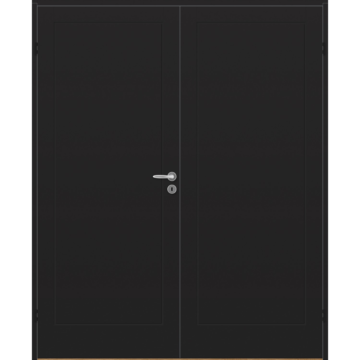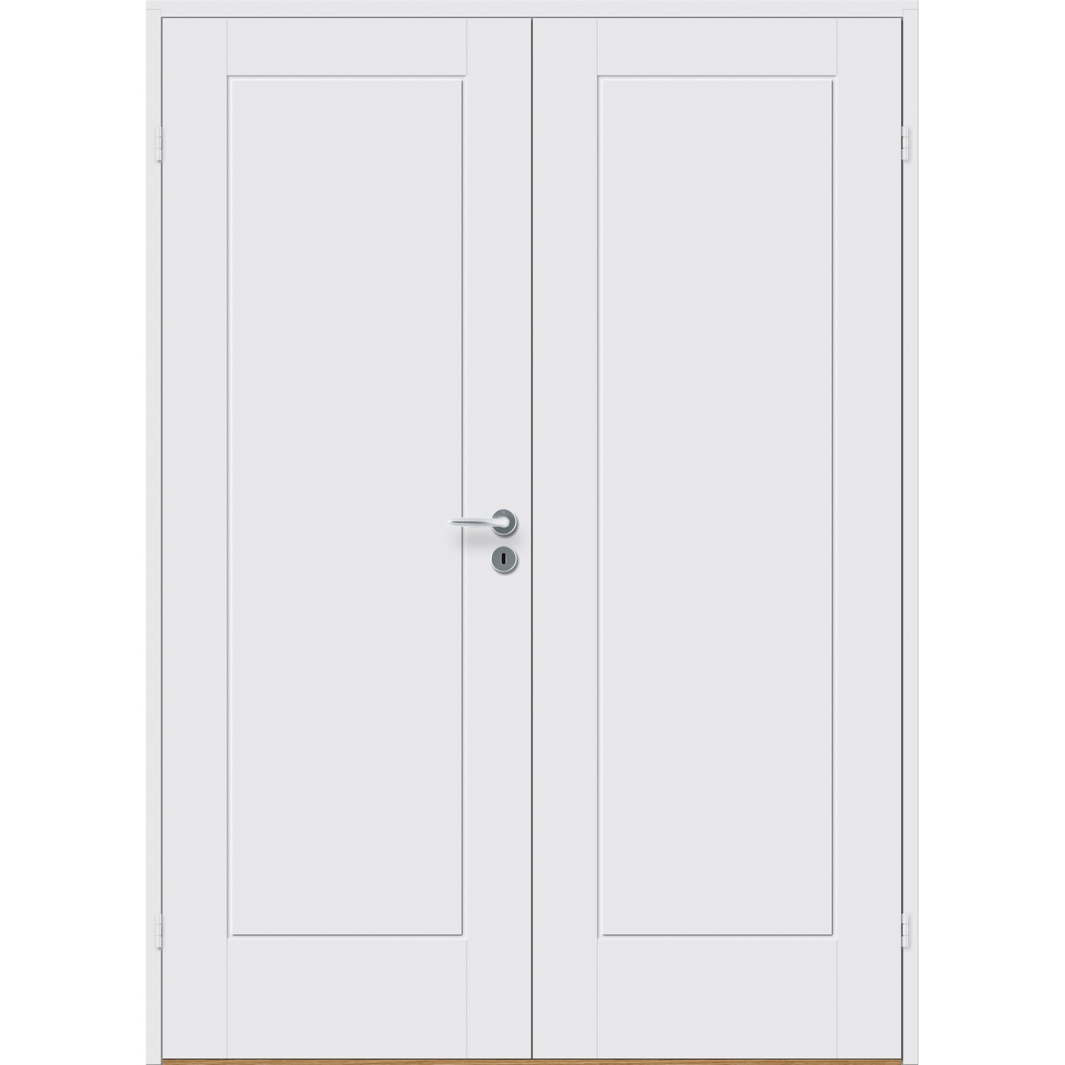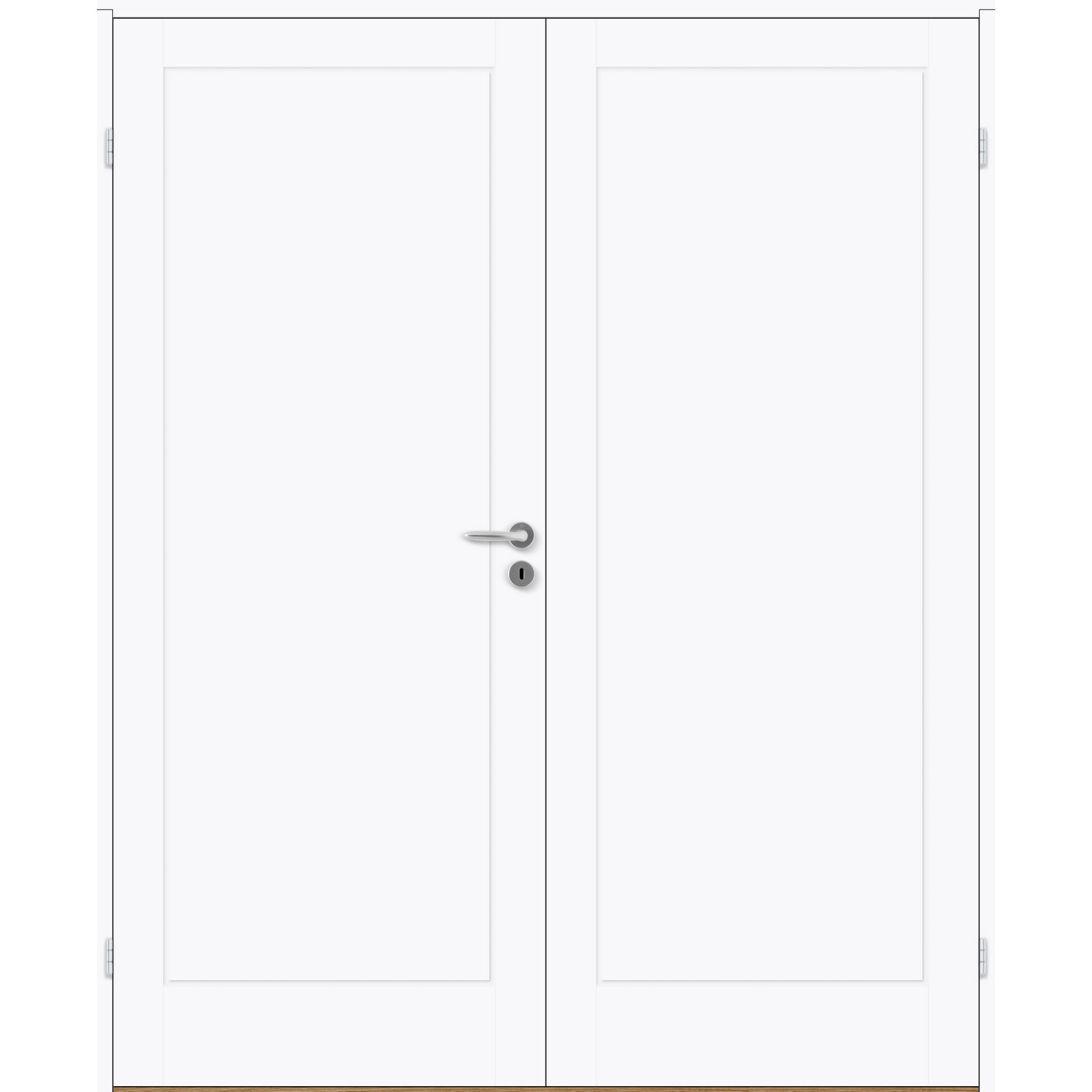 Dobbel innerdør leveres med automatisk lik deling mellom dørbladene. Ønsker du en annen løsning, ber vi deg kontakte kundeservice for å få et riktig tilbud på dør med hengslet sidepanel.