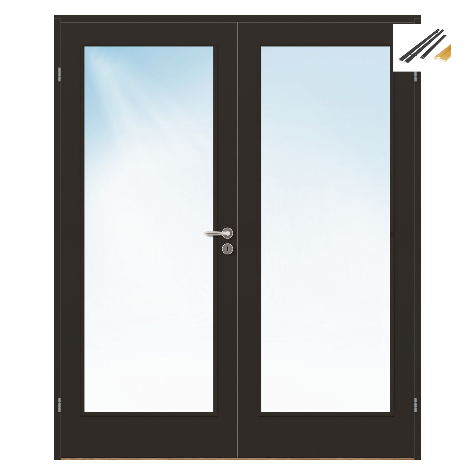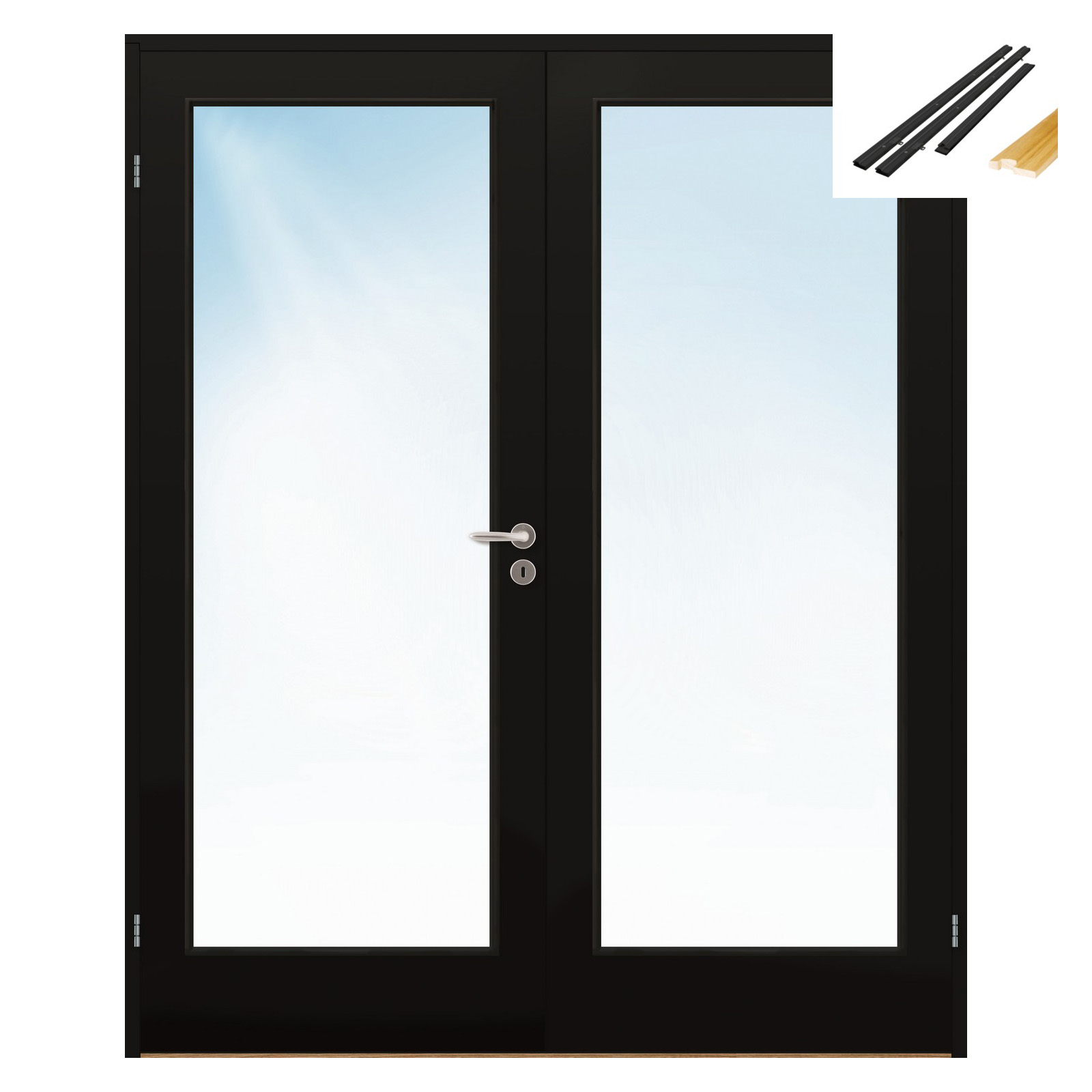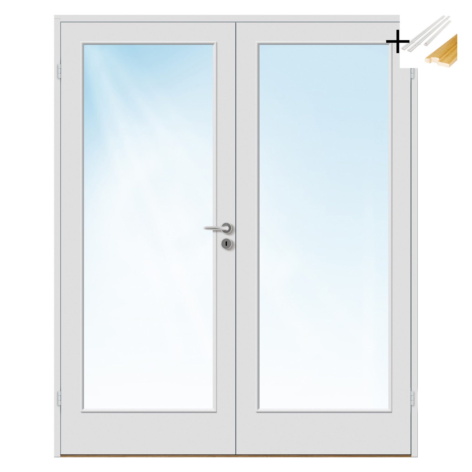 Tofløyet Dør Bygg1 Sletten Kompakt FW Klarglass er en stilren, tofløyet dør med et stort glassparti.