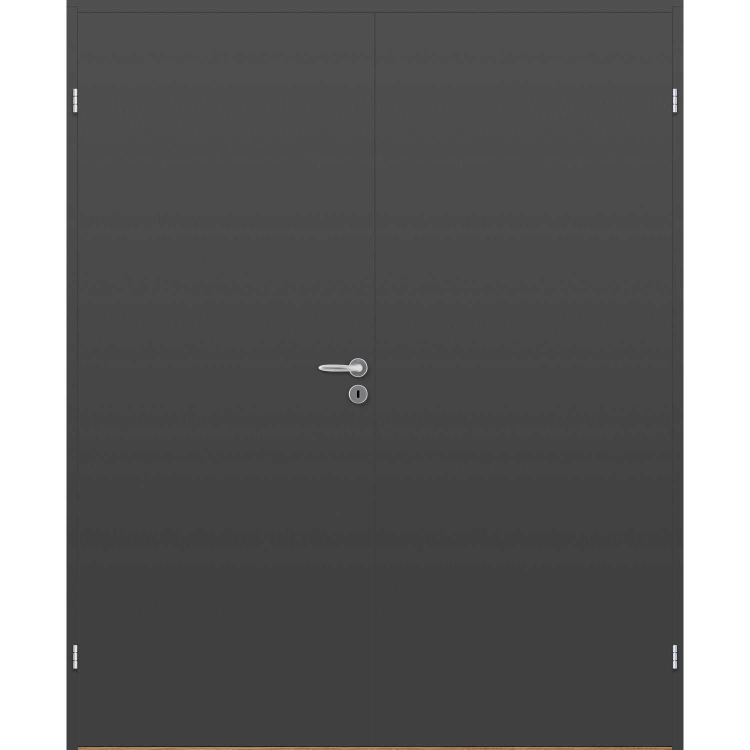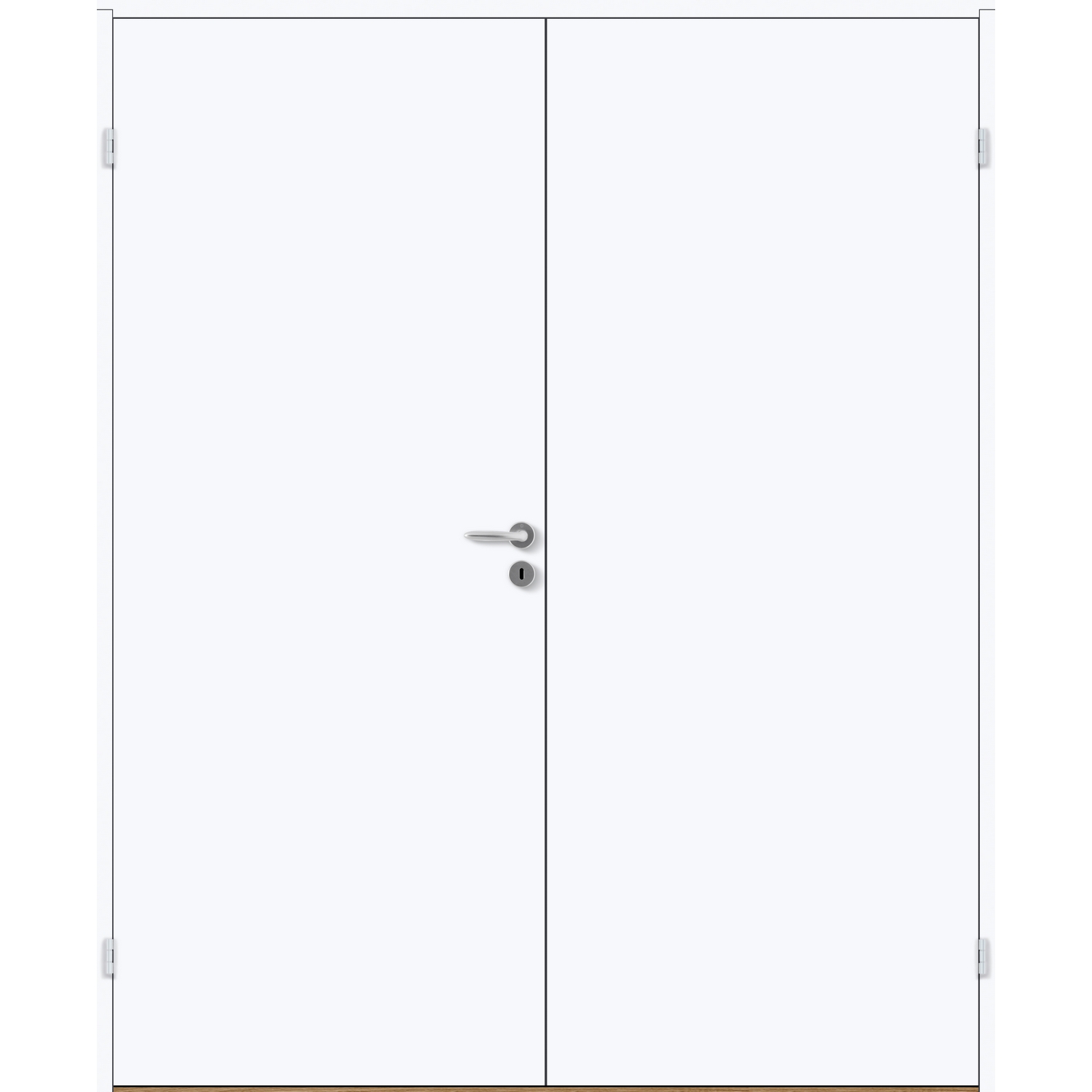 Dobbel innerdør leveres med automatisk lik deling mellom dørbladene. Ønsker du en annen løsning, ber vi deg kontakte kundeservice for å få et riktig tilbud på dør med hengslet sidepanel.