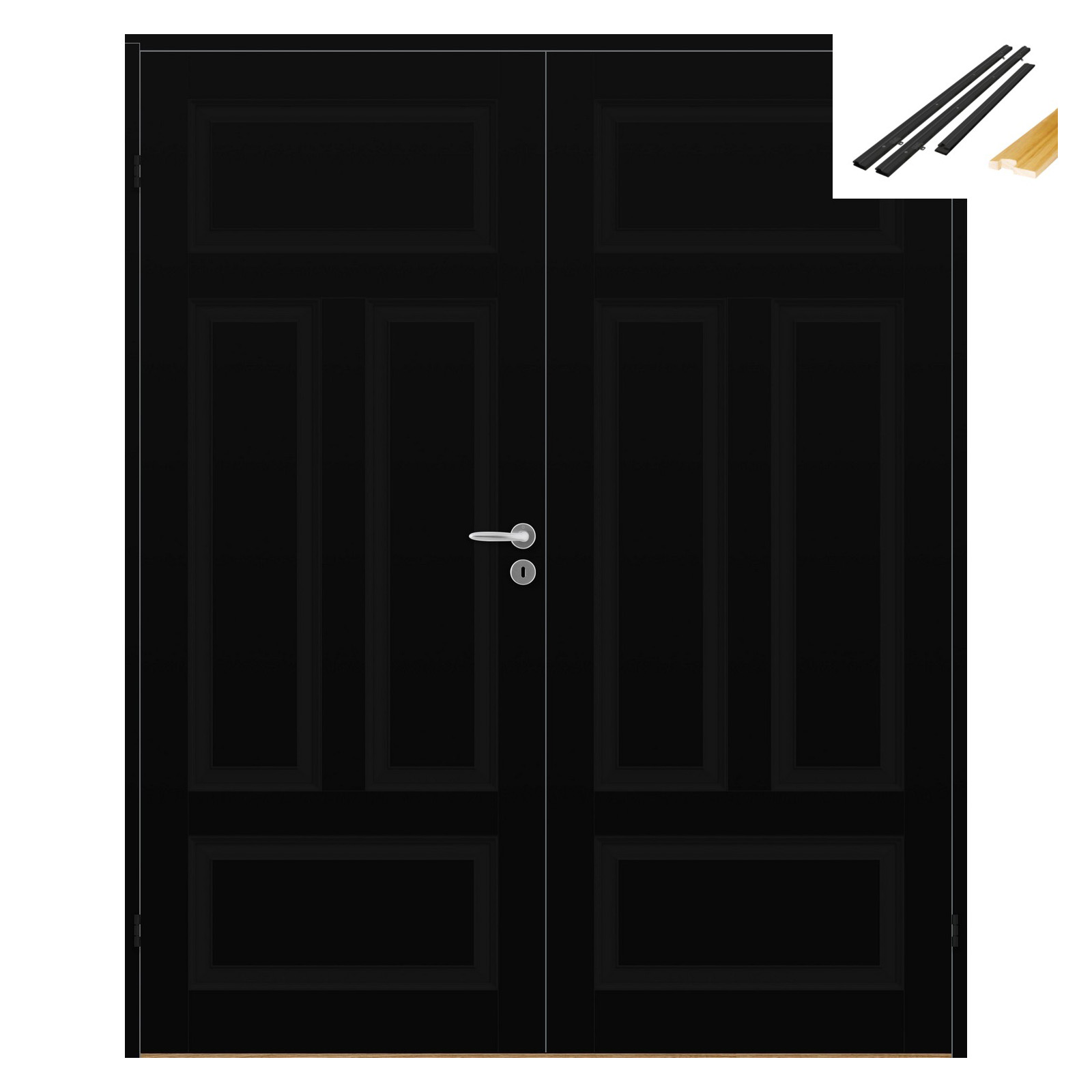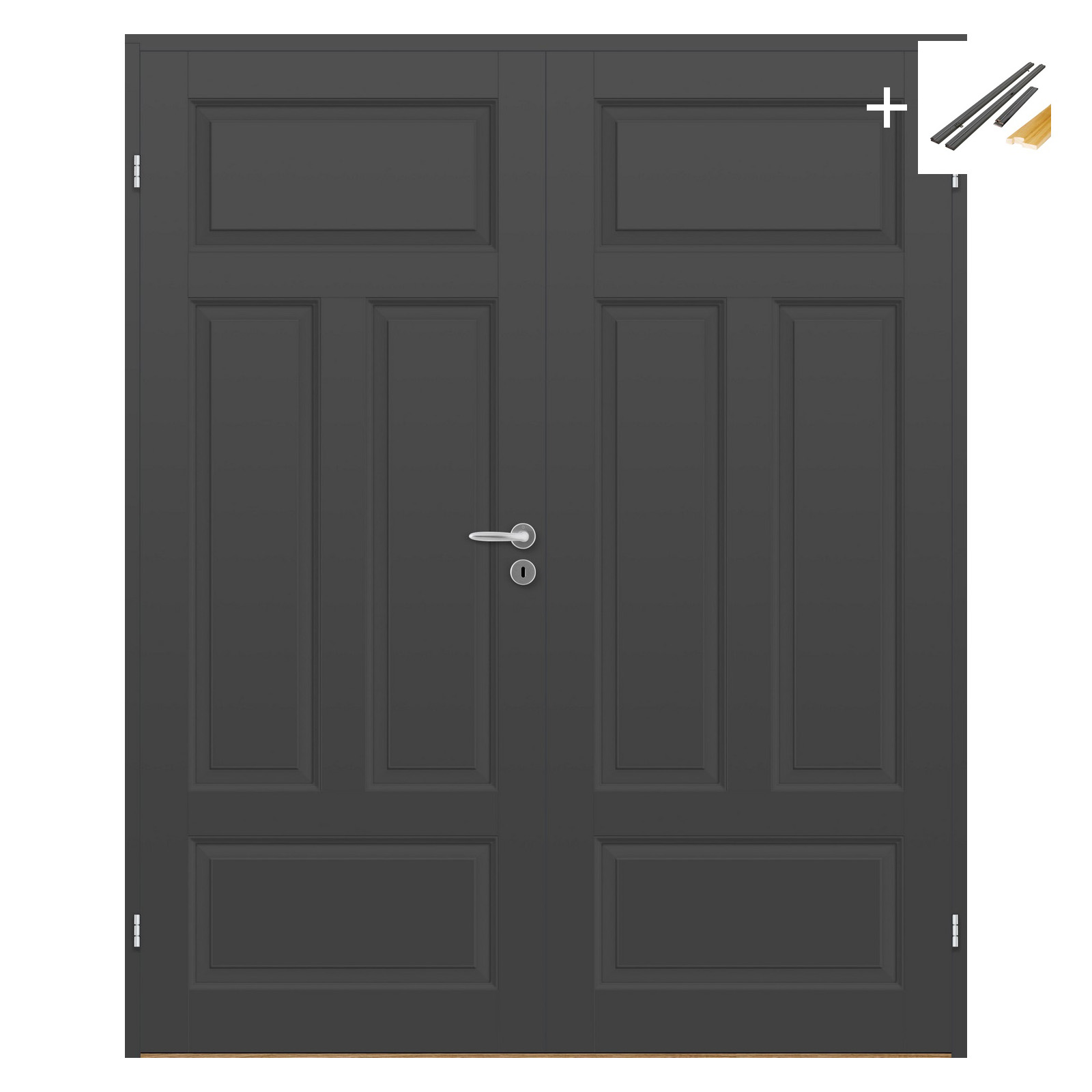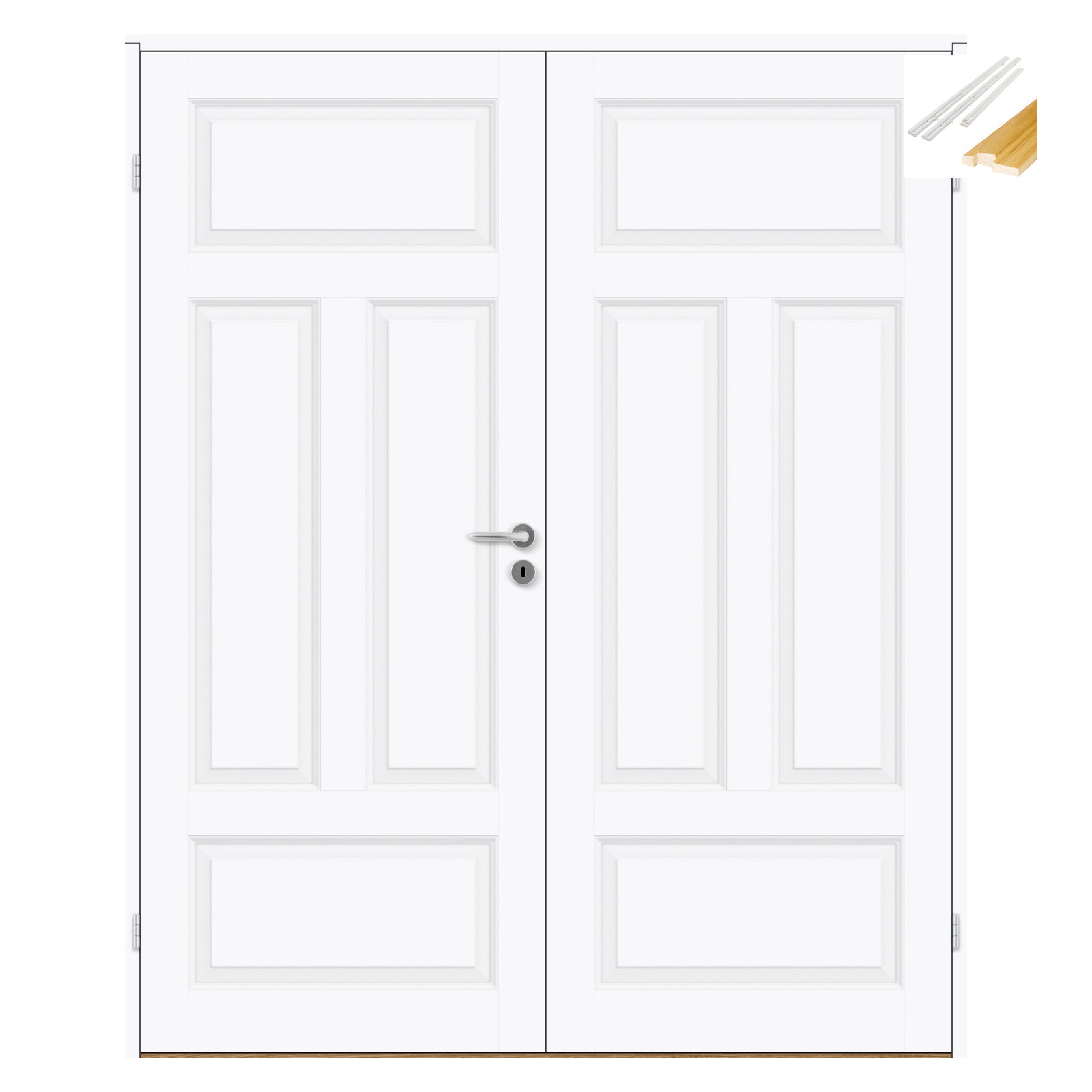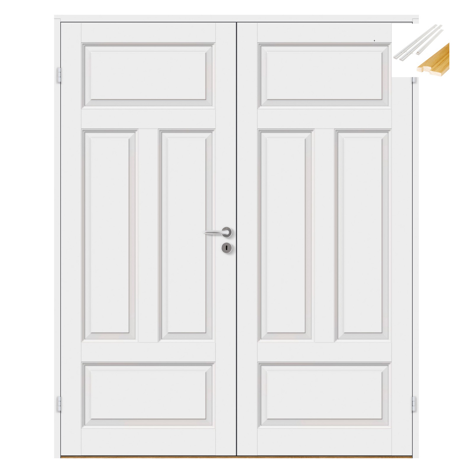 Tofløyet Dør Bygg1 Thomas er en massiv fyllingsdør i klassisk design med to horisontale og to vertikale speil pr dørblad.
