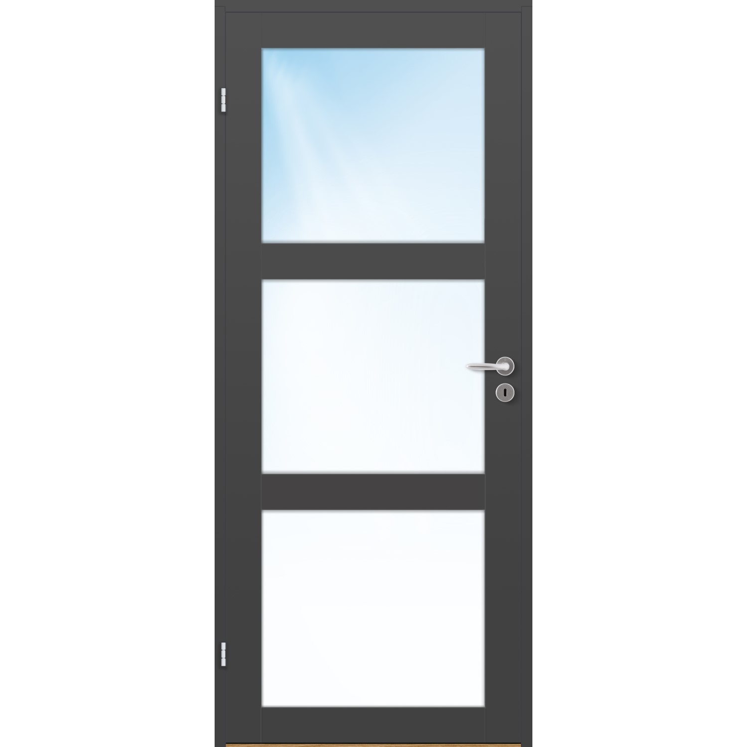 Innerdør Bygg1 Base 3 Klarglass er en moderne og minimalistisk innerdør med 3 stk glassfelt i klarglass.