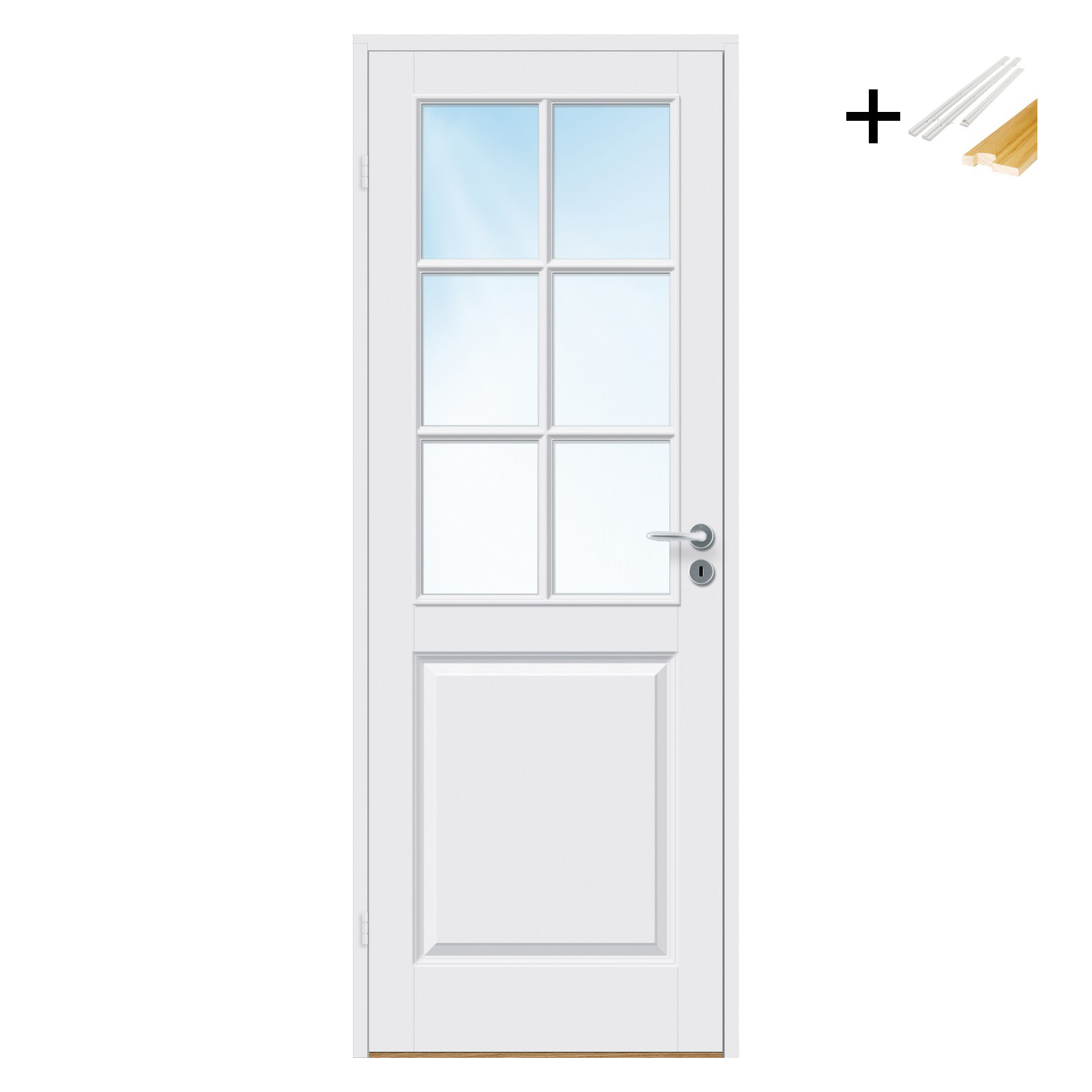 Innerdør Bygg1 Kari Kompakt HW Klarglass er en klassisk innerdør med 6 glassruter.