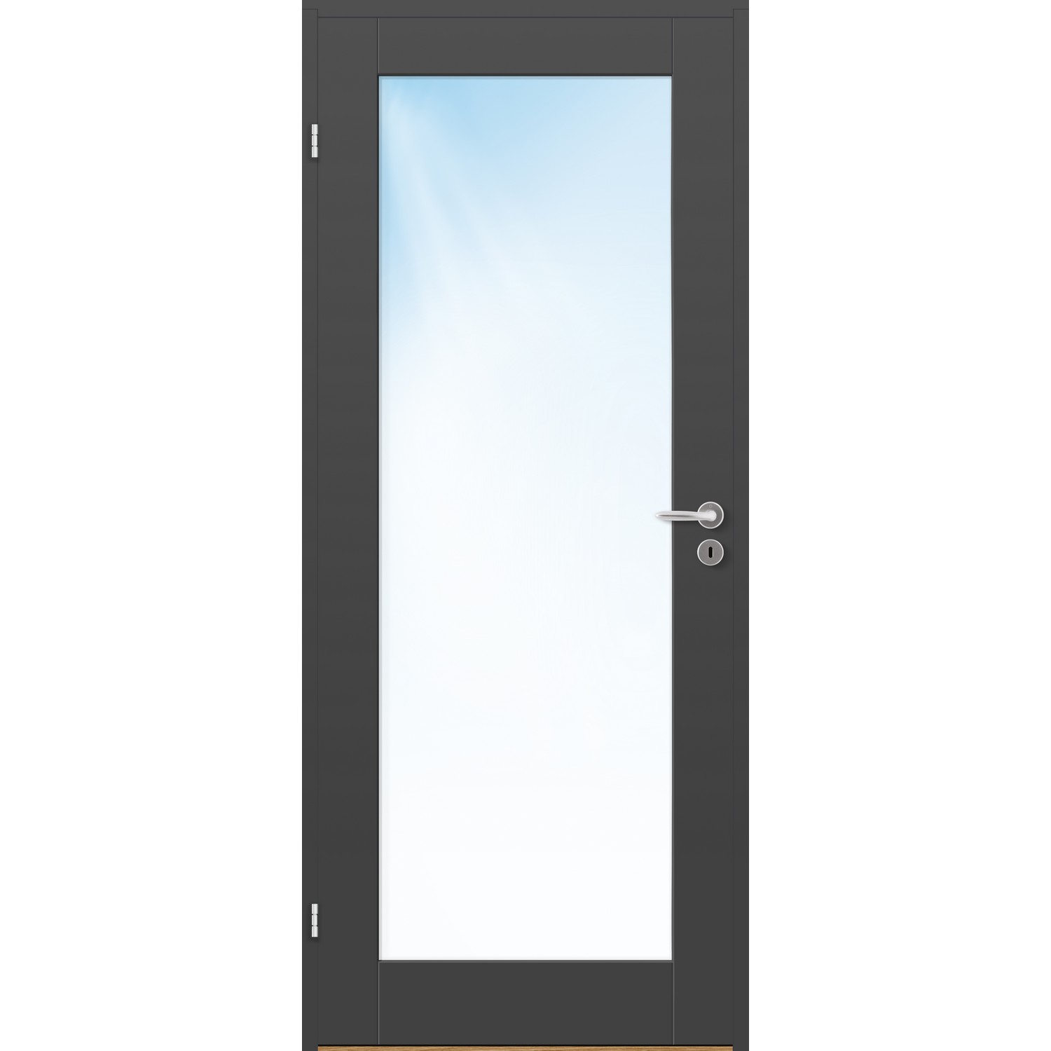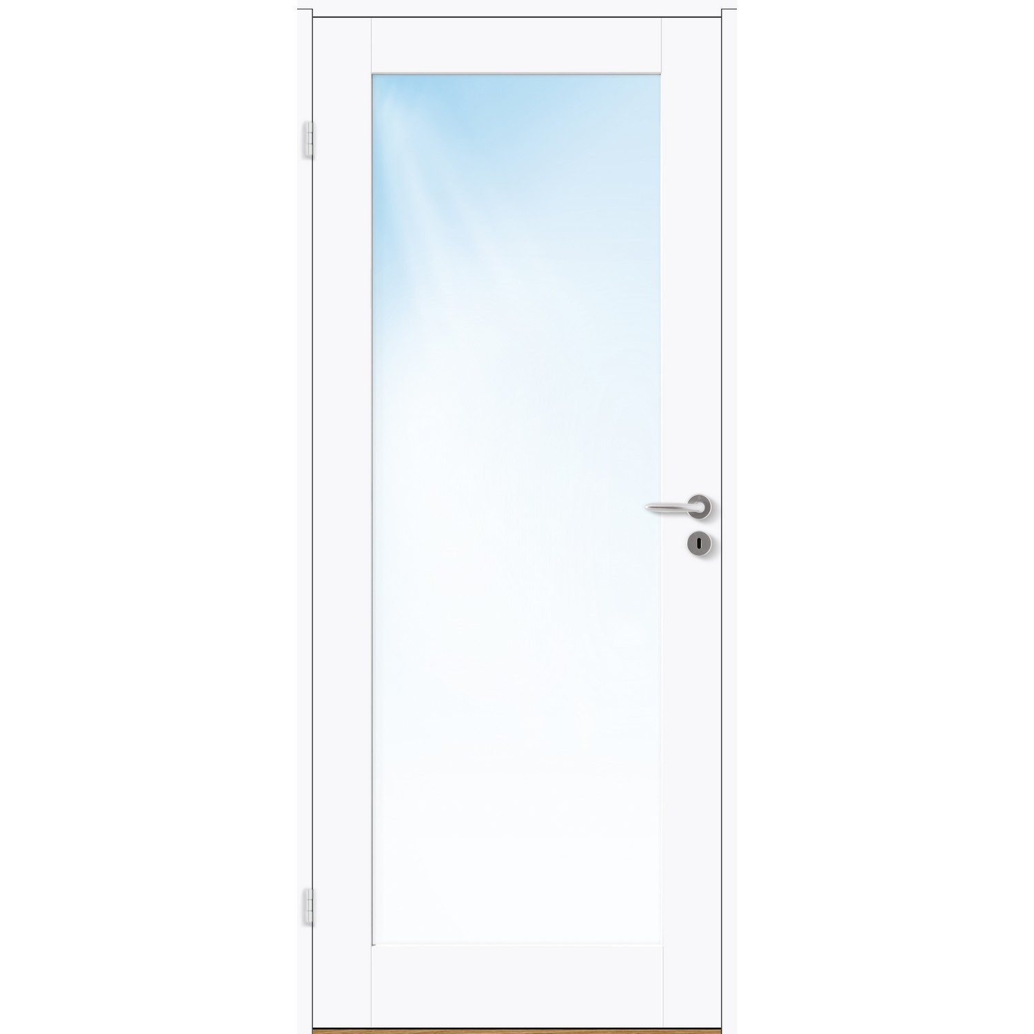 Innerdør Bygg1 Stil 1 Klarglass er en elegant, klassisk innerdør med et stort glassparti i klarglass.