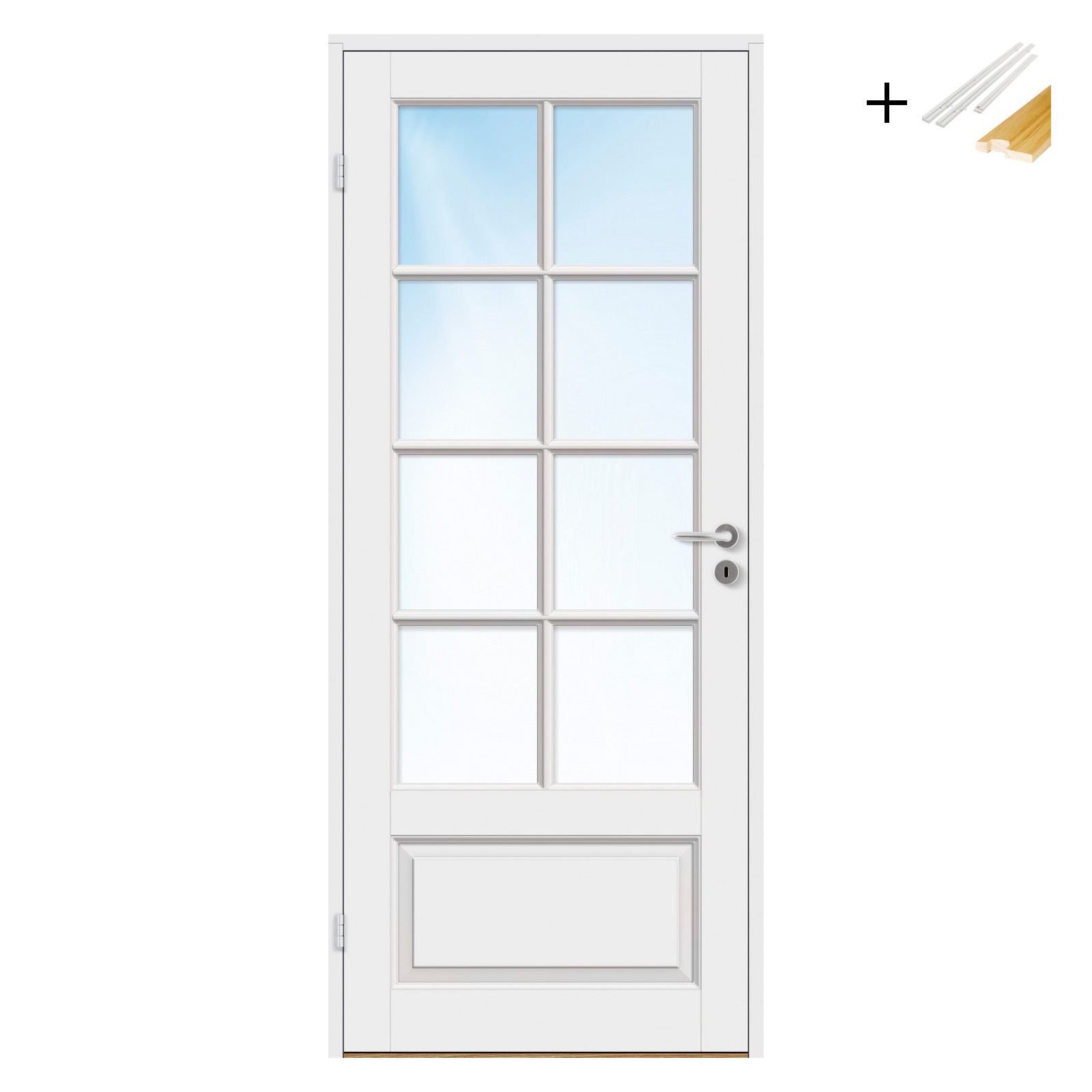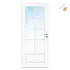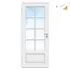 Innerdør Bygg1 Thomas FW Klarglass er en massiv fyllingsdør i klassisk design med glasspart med 2x4 ruter utenpåliggende sprosser og et vertikalt speil i nedkant.