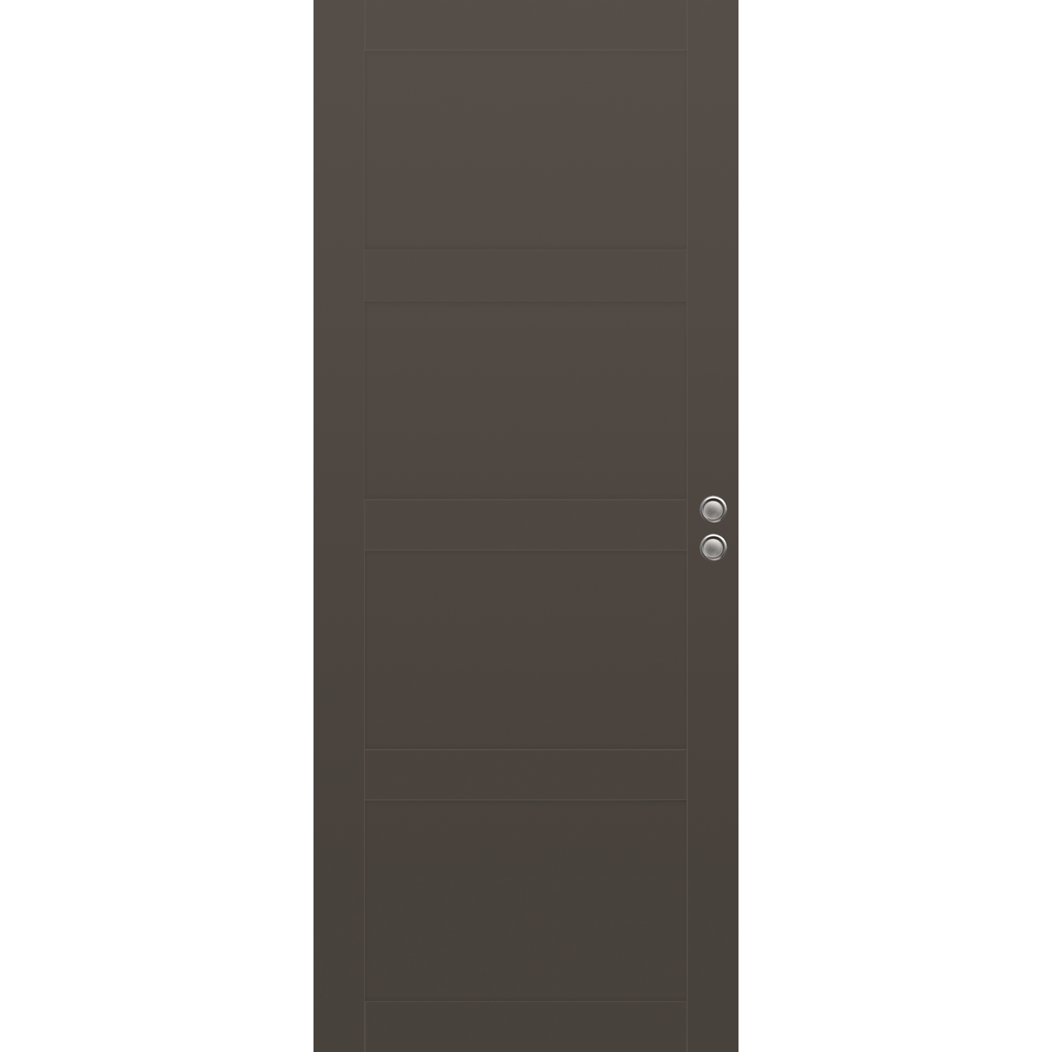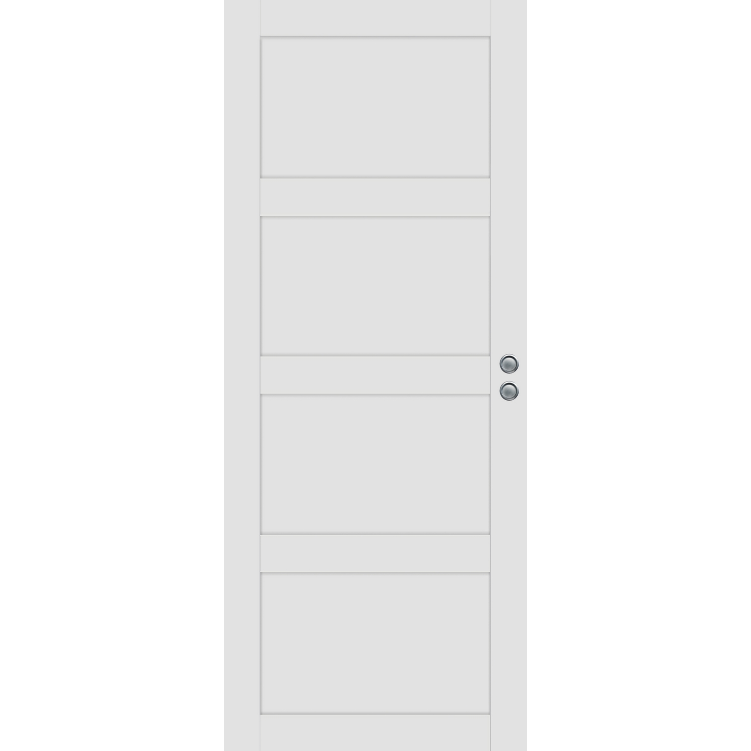 Moderne massiv innerdør med minimalistisk design og av god kvalitet. Overflaten er belagt med 4mm MDF som er malt med vannbasert maling. Dørene er oppbygd med ramtre av laminert fingerskjøtt furu, som gjør at de har en god stabilitet.
