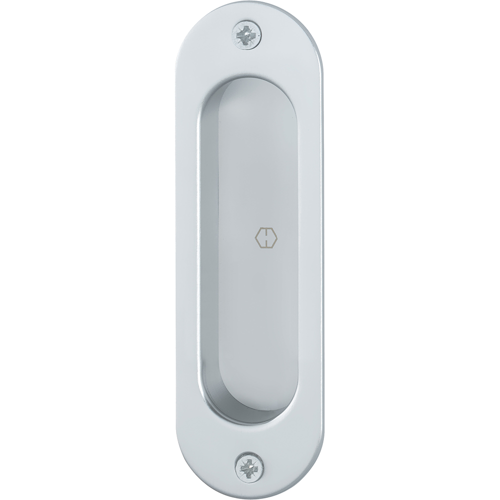Ovalt skålhåndtak for skyvedør. Leveres i farge sølv, stål, gull eller bronse. Forpakning á 2 stk.