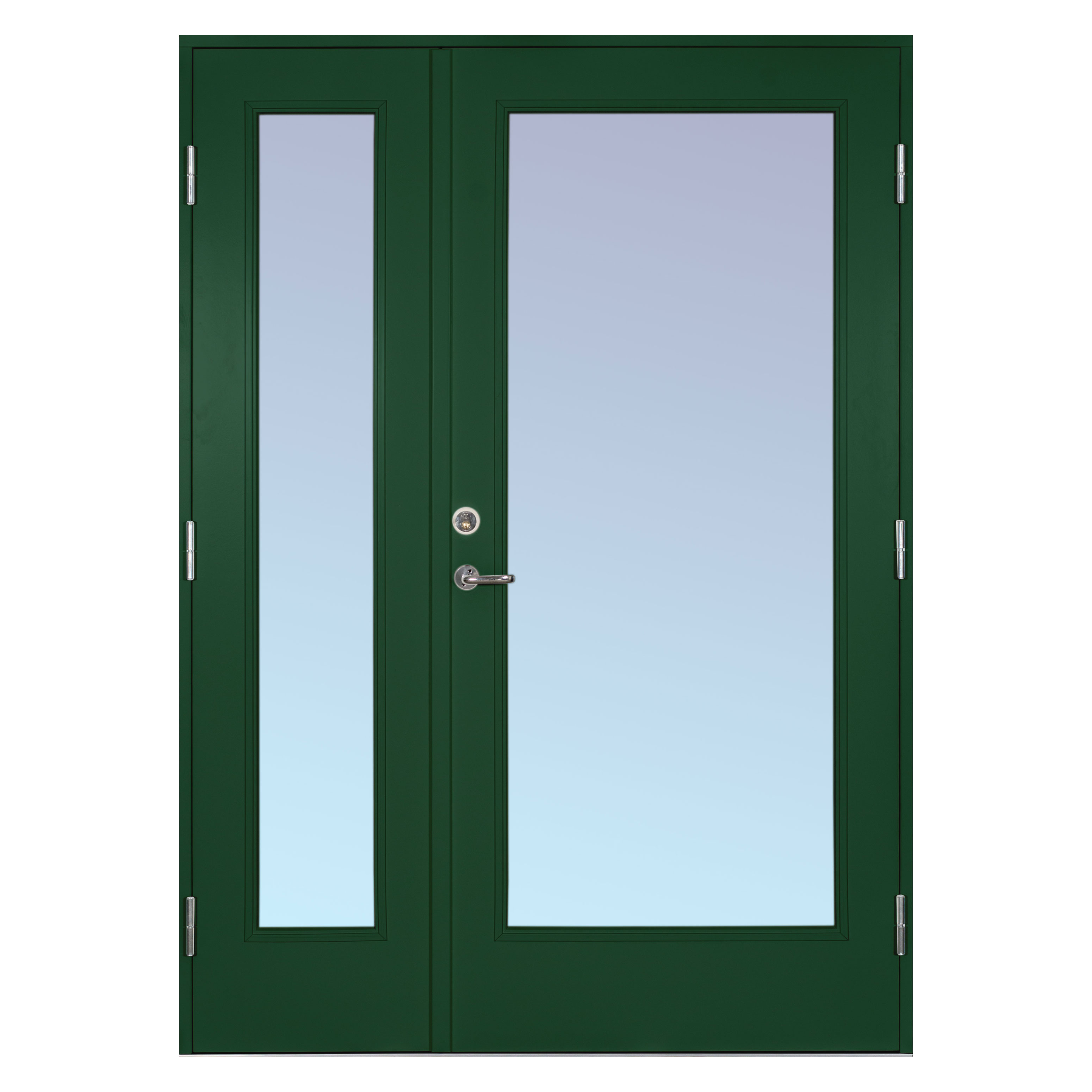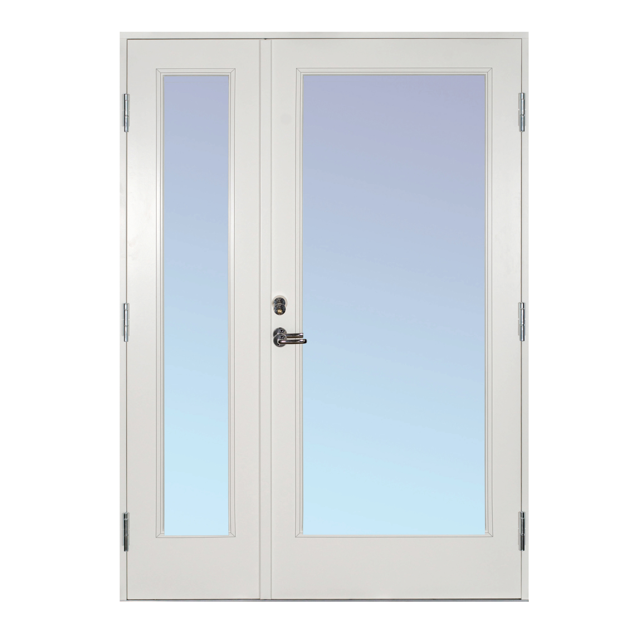 Vindusglasset er som standard, klart glass, termoglass (4 + 20AR + 4 mm). Kan også leveres med frostet glass. Som standard leveres alle dører i hvitt NCS S 0502-Y, men kan også fås i 5 andre farger. Alle er vannbaserte og miljøvennlige.