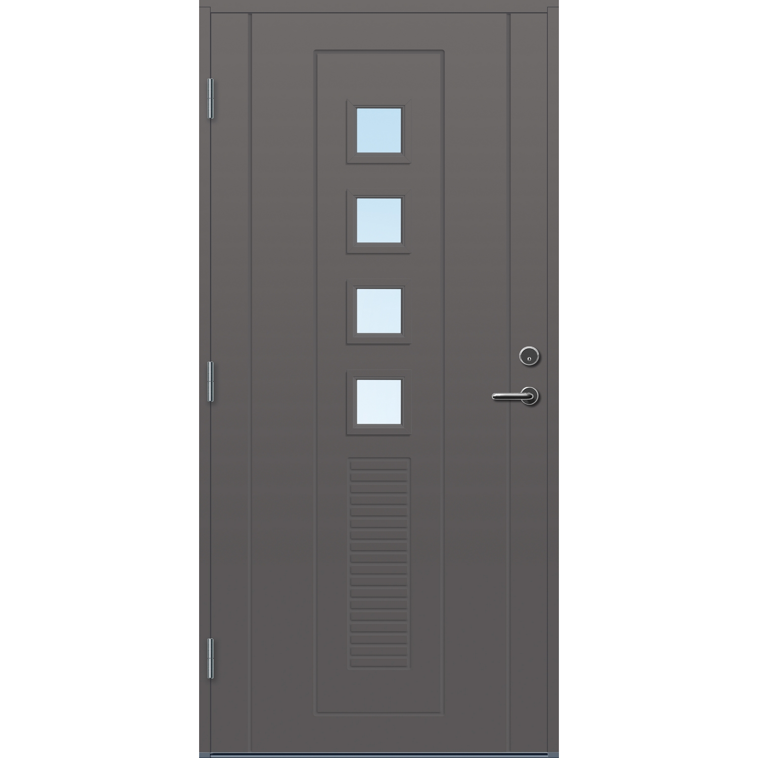 Inngangspartiet og ytterdøra er huset sin velkomst. Personlig smak og arkitektur har betydning når du skal velge dører til ditt hus. Dette er en serie ytterdører som er funksjonelle og har høy kvalitet. Med hele fire strøk maling på utsatte steder, er dørene behandlet for å tåle vårt nordiske klima. Pakningen er festet på dørbladet for å forhindre unødig slitasje.