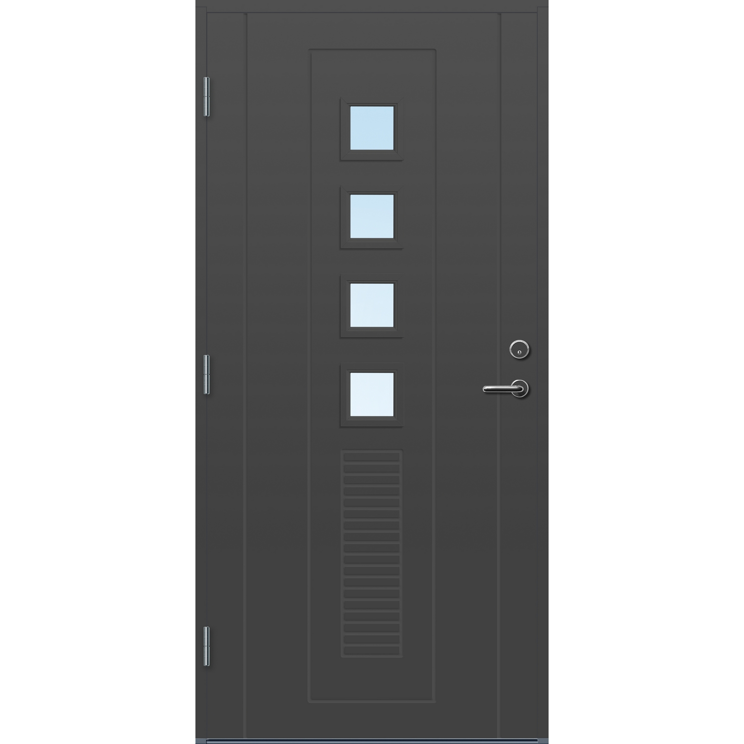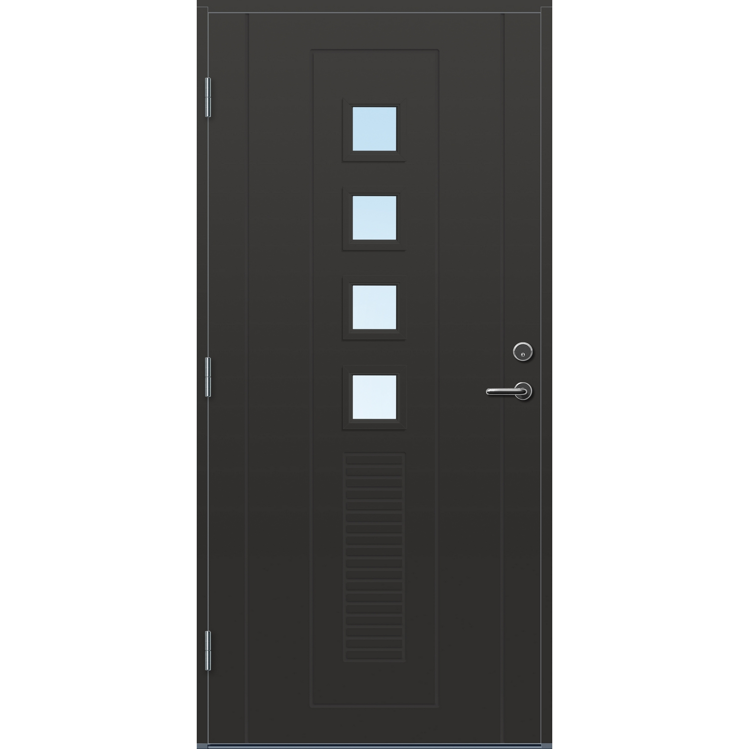Ytterdører fra Bygg1 med glatt eller sporfrest utside. Dørene har en bladkonstruksjon av furu ramtre med 54 mm freonfritt isolasjonsmateriale. På begge sider er det limt 0,4 millimeter aluminium og 4 millimeter HDF. Både dør og karm er grunnet med 2 strøk 2-komponent syreherdet grunning og 1 strøk vannbasert toppstrøk. Toppstrøk på andre farger enn hvit er også 2-komponent.