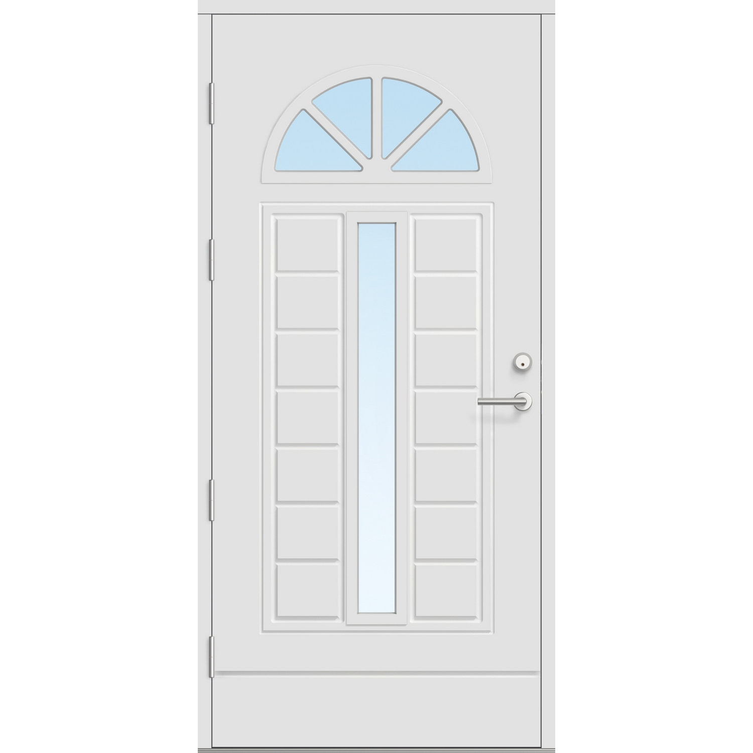 Ytterdør Bygg1 Fjell 13 Klarglass inngår i en serie eksklusive og robuste designdører i thermo-utførelse med en U-verdi på 0,6-0,75. Denne flotte kolleksjonen med dører har en moderne utførelse som gjør at den skiller seg ut i mengden samtidig som at designet er tidløst. En god dør skal være vakker, praktisk og holdbar, samt komplettere husets arkitektur. En solid konstruksjon med funksjonelle detaljer gjør døren både praktisk, sikker og holdbar i vårt nordiske klima. Dørene er produsert i vannbestandig HDF. Glasset er energisparende 3-lags isolerglass med argongass og selektivt belegg, som slipper gjennom kortbølget solenergi og reflekerer langbølget romvarme. Disse dørene kan benyttes i hus som er bygget etter passivhusstandard.