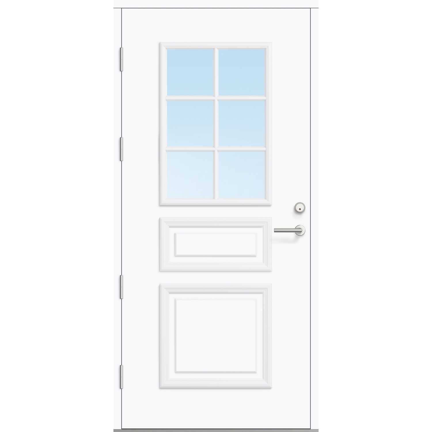 Ytterdør Bygg1 Fjord 03 Klarglass inngår i en serie eksklusive og robuste designdører i thermo-utførelse med en U-verdi på 0,6-0,75. Denne flotte kolleksjonen med dører har en tradisjonell og tidløs utførelse. En god dør skal være vakker, praktisk og holdbar, samt komplettere husets arkitektur. En solid konstruksjon med funksjonelle detaljer gjør døren både praktisk, sikker og holdbar i vårt nordiske klima. Dørene er produsert i vannbestandig HDF og har utenpåliggende dekor av CPVC. Glasset er energisparende 3-lags isolerglass med argongass og selektivt belegg, som slipper gjennom kortbølget solenergi og reflekerer langbølget romvarme. Disse dørene kan benyttes i hus som er bygget etter passivhusstandard.