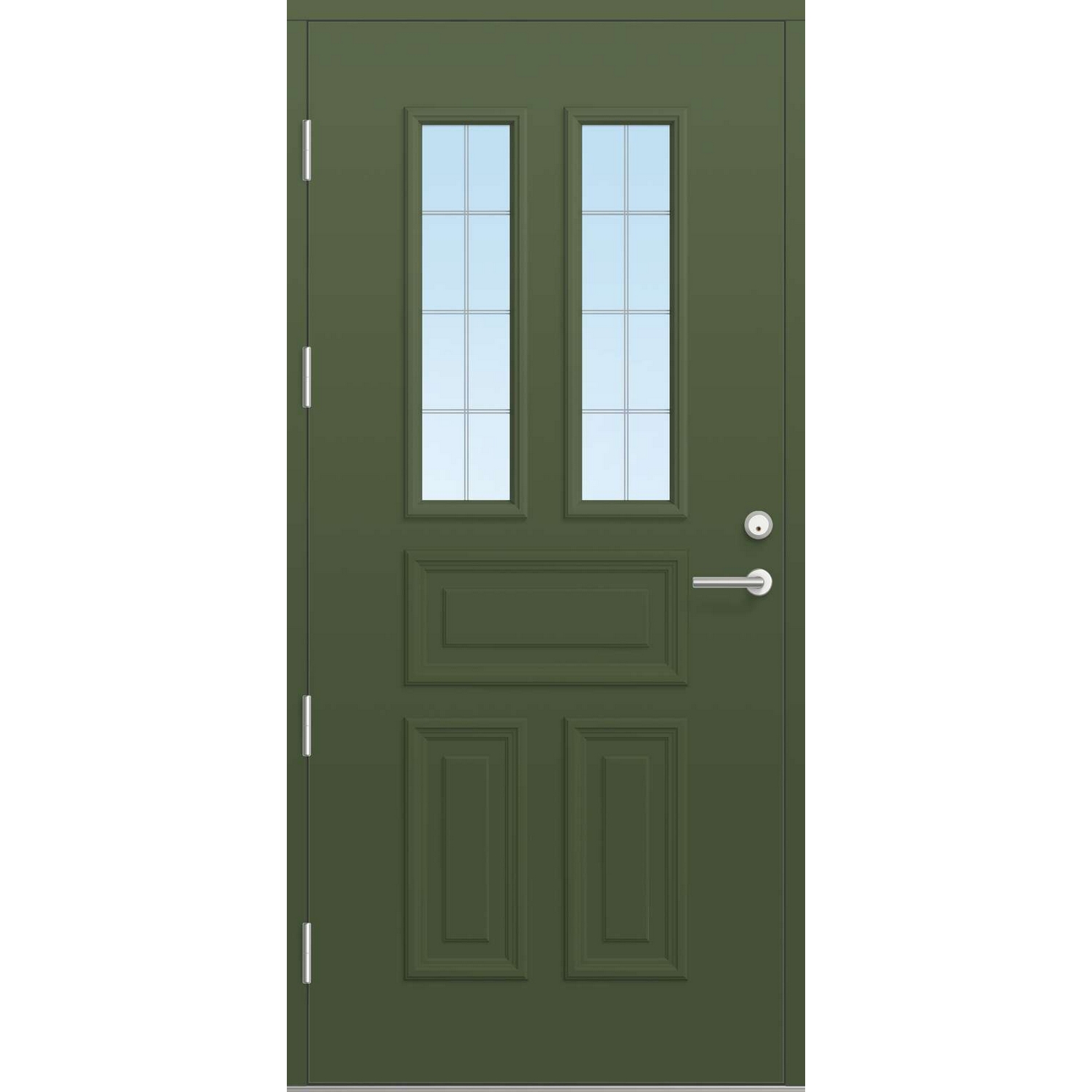 Konstruksjon:- Dørblad og karm er malt med 2-komponent maling som tåler ekstremt klima