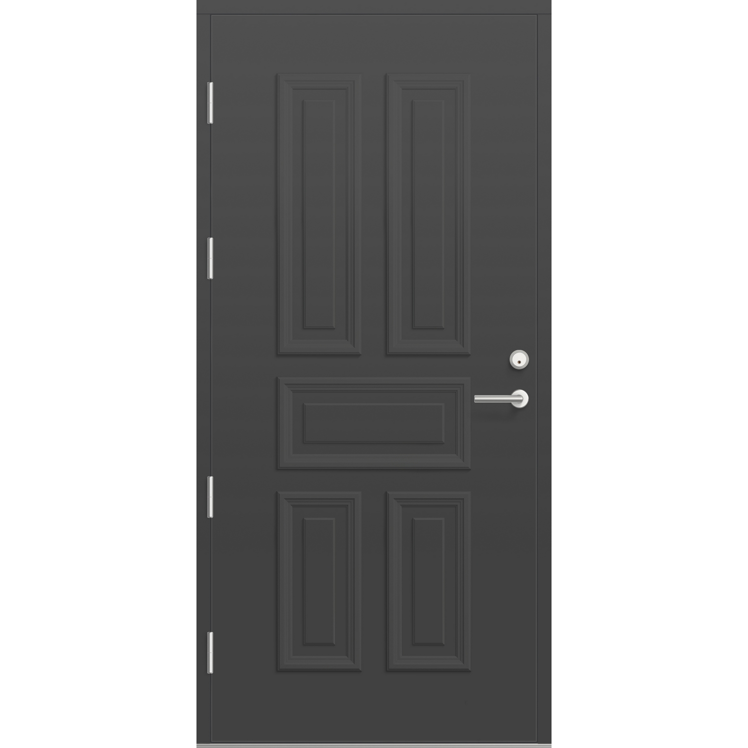 Ytterdør Bygg1 Fjord 04 inngår i en serie eksklusive og robuste designdører i thermo-utførelse med en U-verdi på 0,6-0,75. Denne flotte kolleksjonen med dører har en tradisjonell og tidløs utførelse. En god dør skal være vakker, praktisk og holdbar, samt komplettere husets arkitektur. En solid konstruksjon med funksjonelle detaljer gjør døren både praktisk, sikker og holdbar i vårt nordiske klima. Dørene er produsert i vannbestandig HDF og har utenpåliggende dekor av CPVC. Glasset er energisparende 3-lags isolerglass med argongass og selektivt belegg, som slipper gjennom kortbølget solenergi og reflekerer langbølget romvarme. Disse dørene kan benyttes i hus som er bygget etter passivhusstandard.